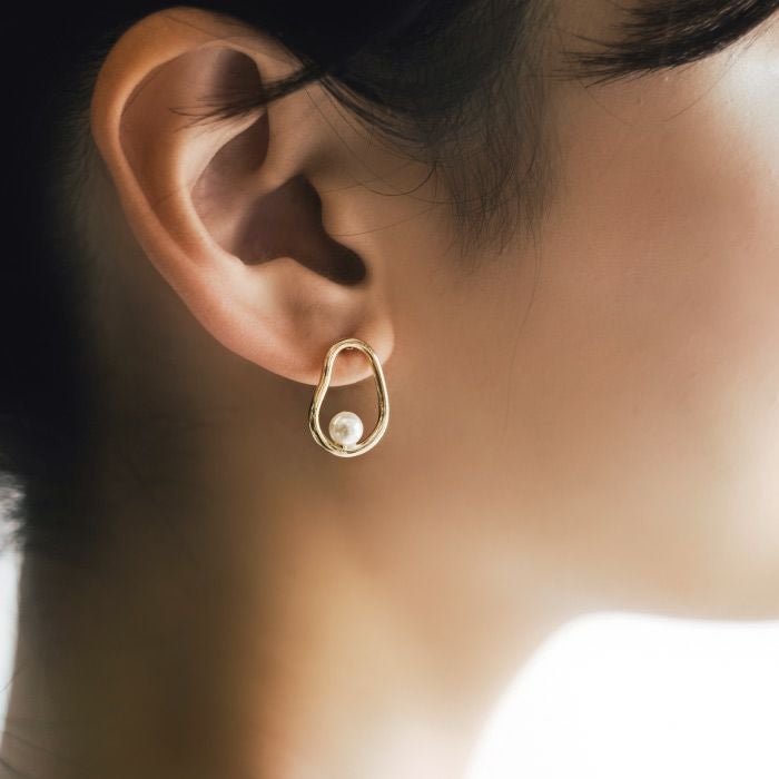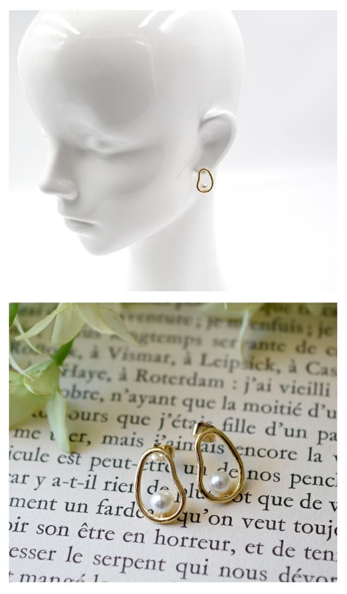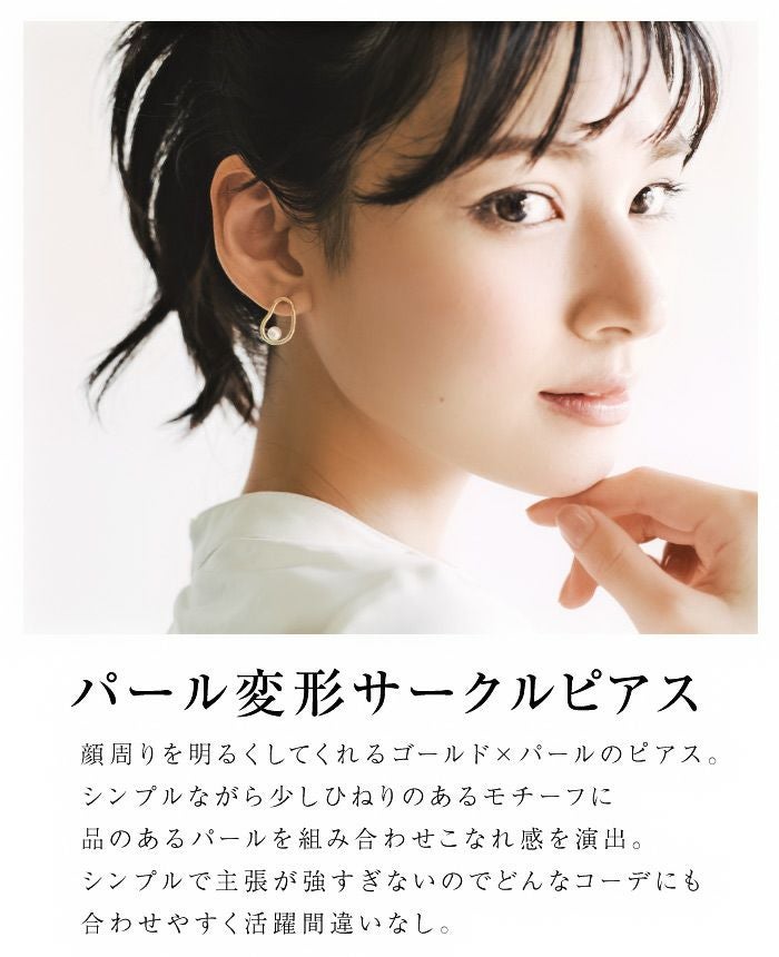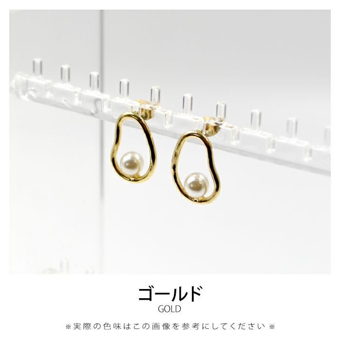 送料無料 【999円祭り】パール付き変形サークルピアス レディース ゴールド ≪ゆうメール便配送30・代引不可≫ | アクアガレージ aquagarage