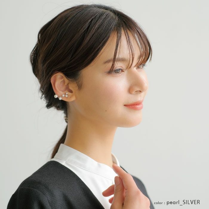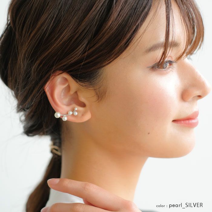 【999円祭り】3連パールビジューバーピアス レディース ゴールド シルバー | アクアガレージ aquagarage