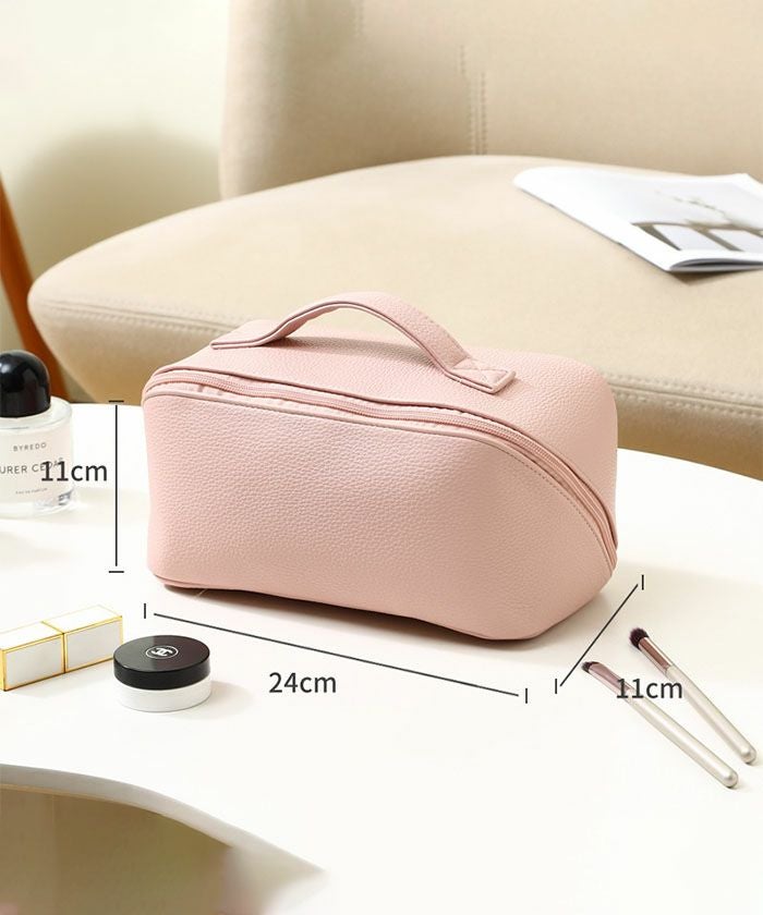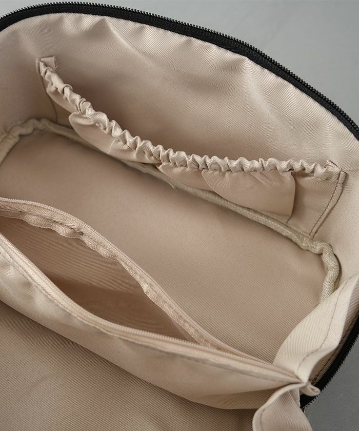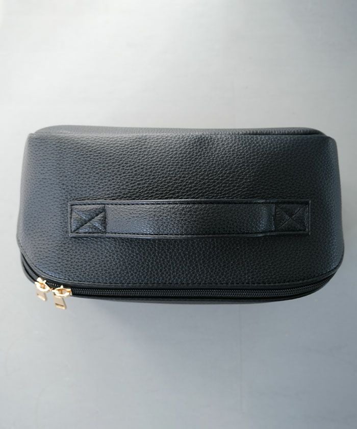 ファスナーは大きく開く仕様なので、中身が一目で確認でき、忙しい朝や外出先でのメイク直しもスムーズに行えます。