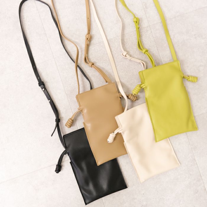 ちょっとそこまでにちょうどいい、スマホポシェット。 小さいながらもスマホやミニ財布などの必要最低限の荷物は収納可能。 手ぶらでスマートにお出かけができちゃいます。