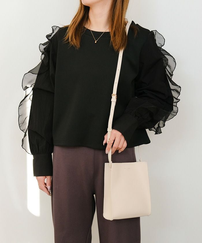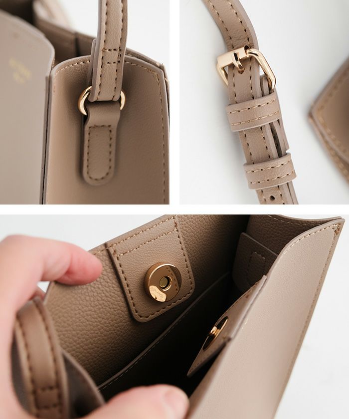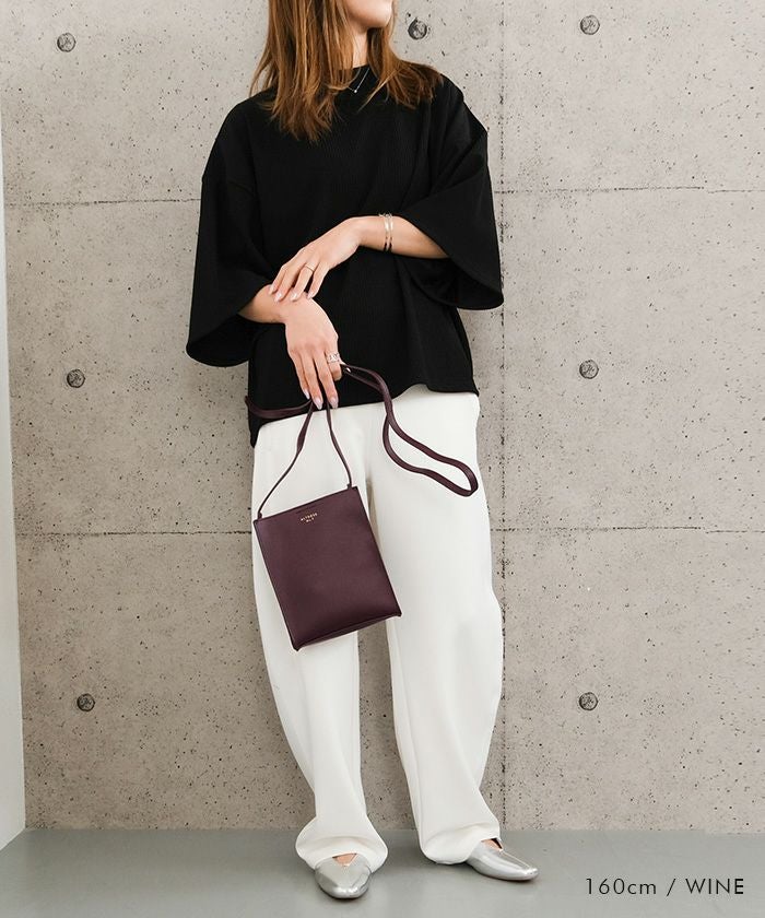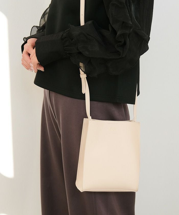 ミニマルなデザインで、様々なコーディネートに合わせやすいバッグ。小ぶりなサイズ感ながらマチがあるため見た目以上の収納力あり。小物収納に便利な内ポケットも完備◎アクセサリー感覚で着こなしのポイント使いにもぴったりです。
