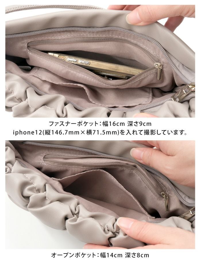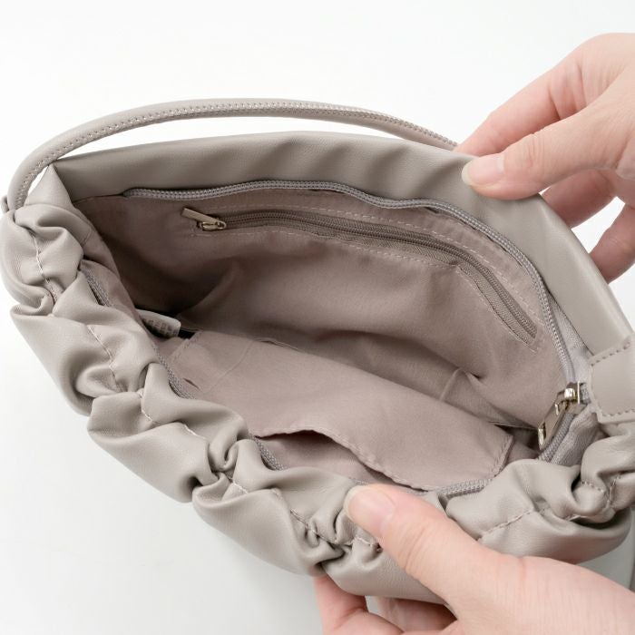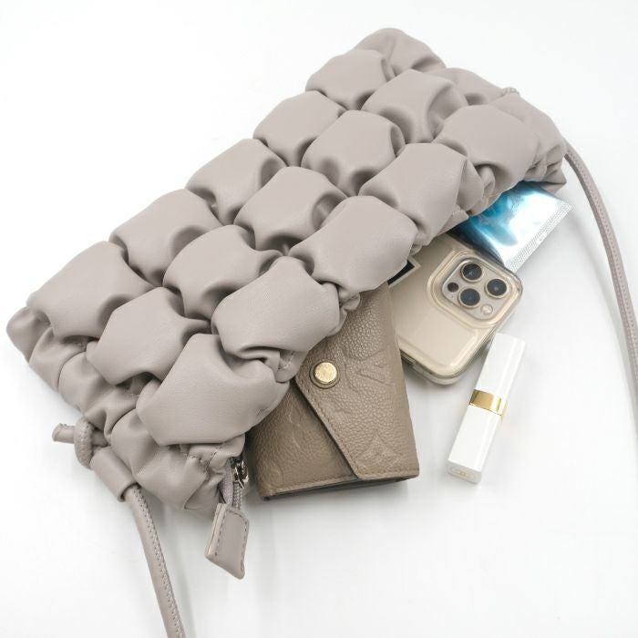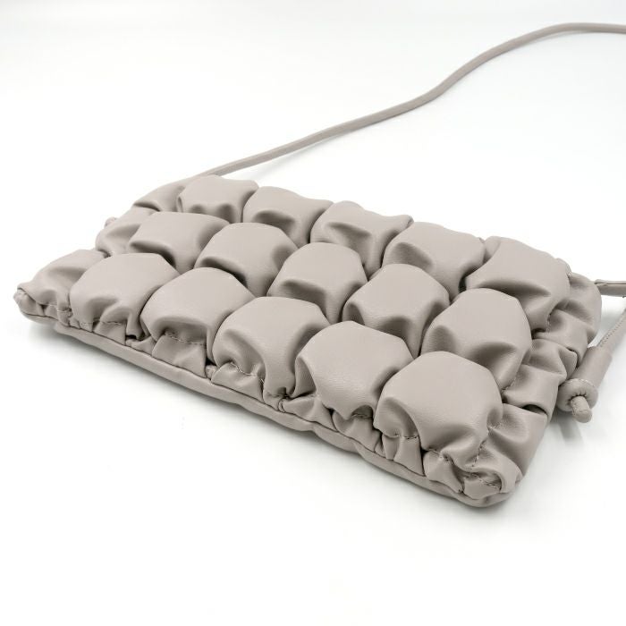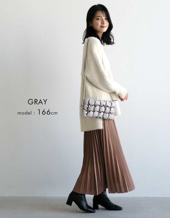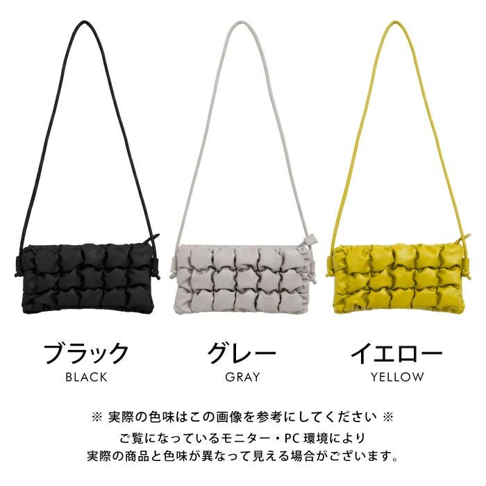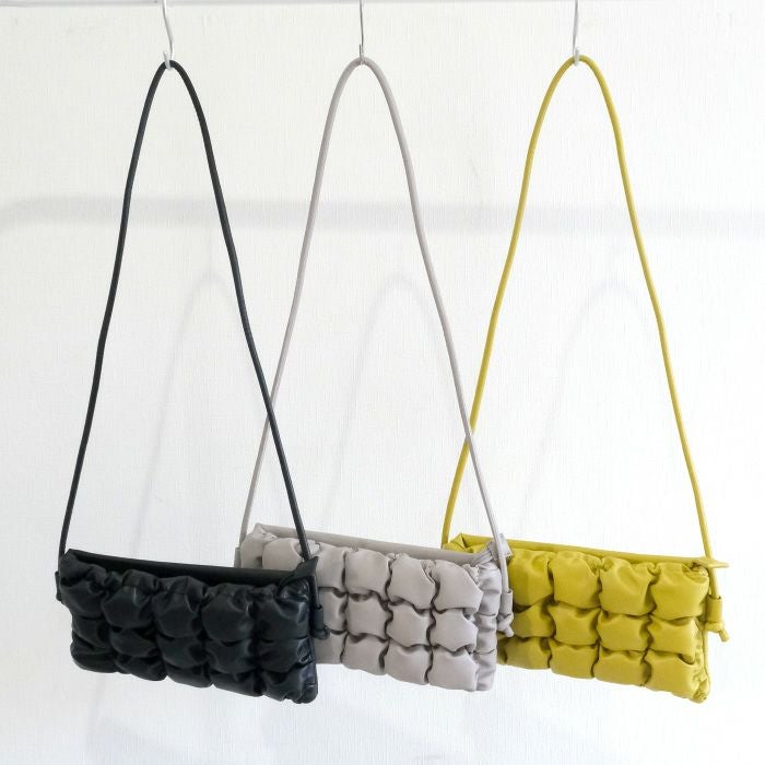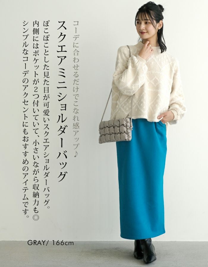 ぽこぽことした見た目が可愛いスクエアショルダーバッグ。 内側にはポケットが2つ付いていて、小さいながら収納力も◎ シンプルなコーデのアクセントにもおすすめのアイテムです。