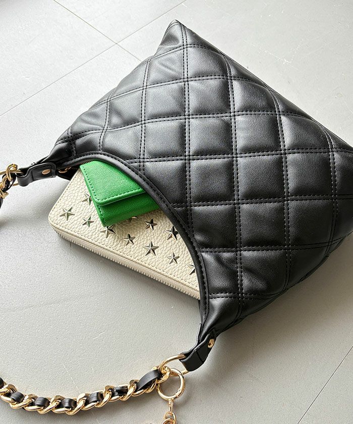 ふっくらとしたキルティングがシーズンムードを高める、上品なショルダーバッグ。