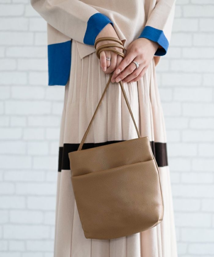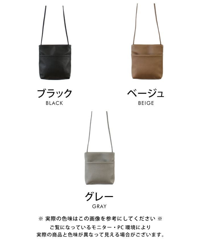 • 柔らかい素材のシンプルポケットショルダーバッグ