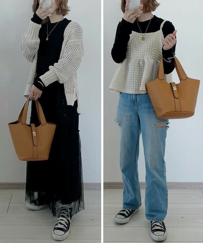 トレンドのワントーンコーデにも馴染む万能バッグです。