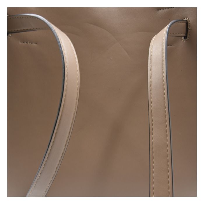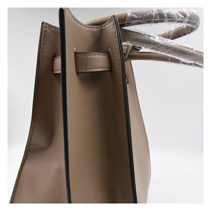 柔らかくしなやかなフェイクレザーを使用し、ラフすぎない高級感が楽しめるトートバッグ。