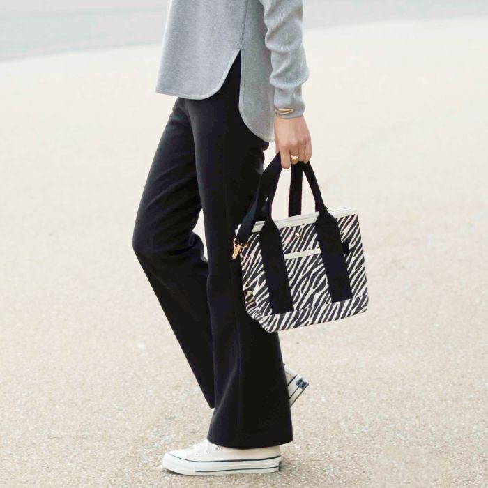 見た目はコンパクトですが、マチが広くてたっぷり入ります。 ペットボトルも収納できて ゼブラ柄も可愛い。 買って良かったです。