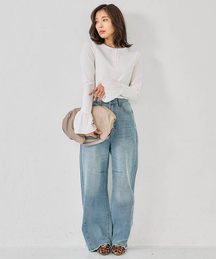 デイリーにはデニムやワイドパンツに合わせて、軽快なカジュアルスタイルに。