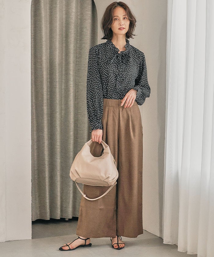 シンプルながら存在感のあるバッグなので、コーディネートにさりげない華やぎを添えてくれます。