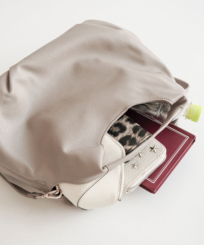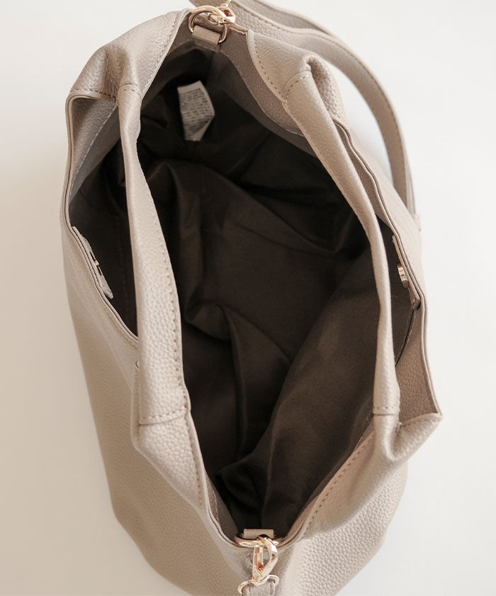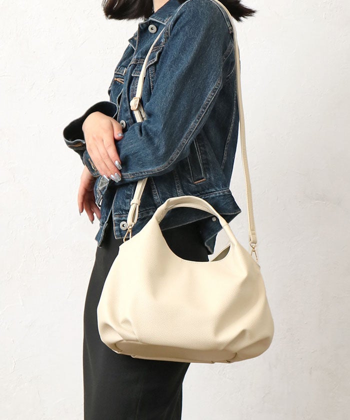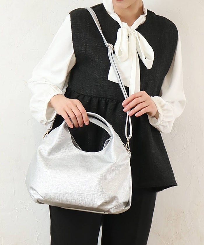 ショルダーストラップは取り外し可能で、肩掛けや斜め掛けはもちろん、ハンドバッグとしても楽しめる2WAY仕様。