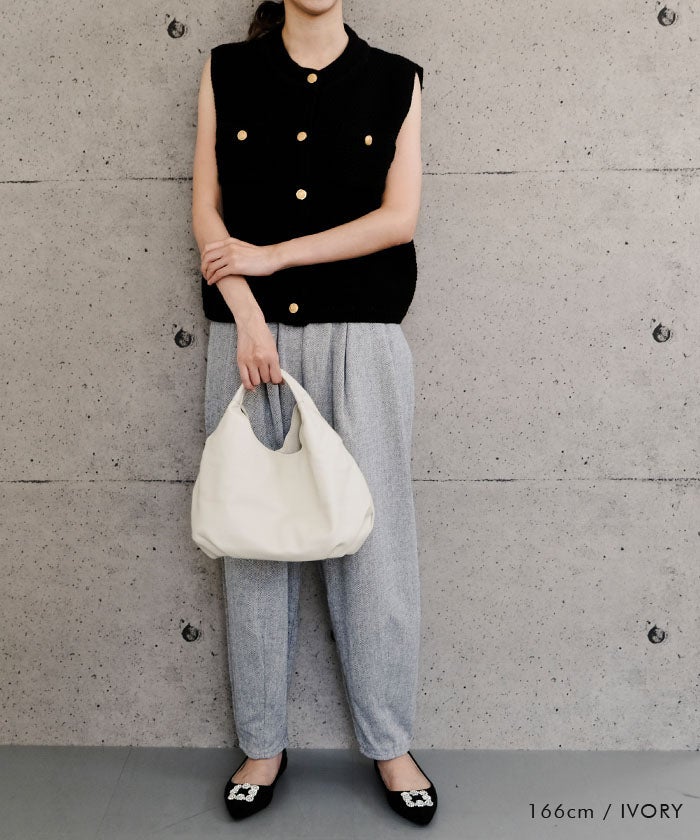 ころんと丸みを帯びたフォルムが女性らしさを引き立て、持つだけでコーディネートに愛らしいアクセントを添えてくれます。