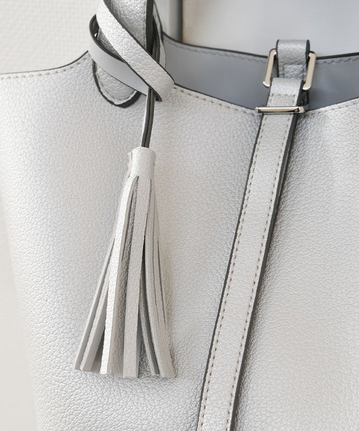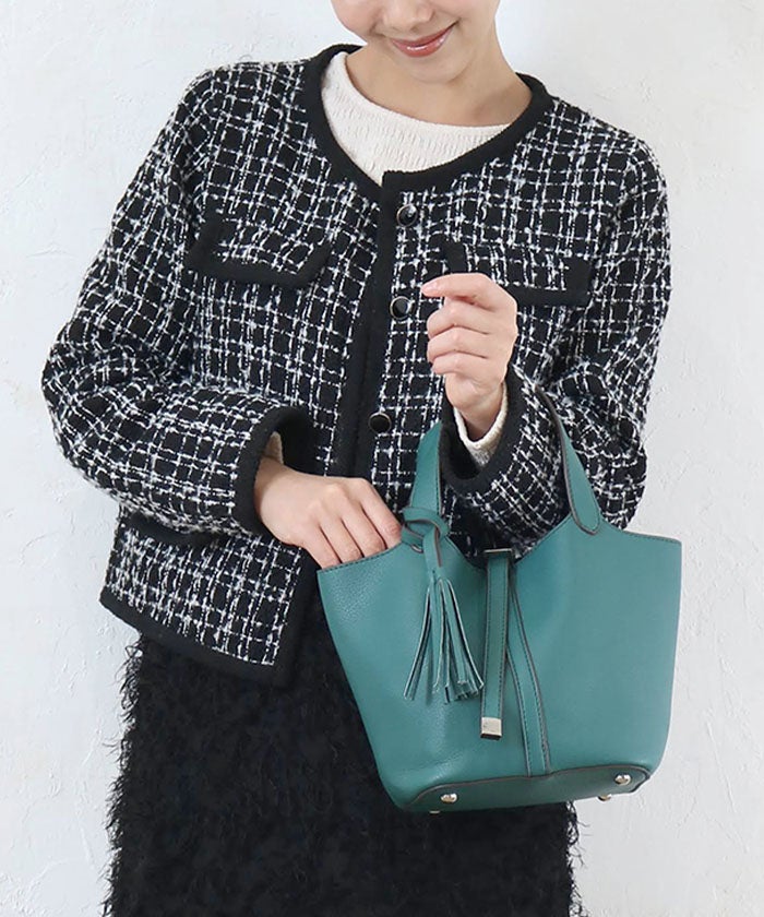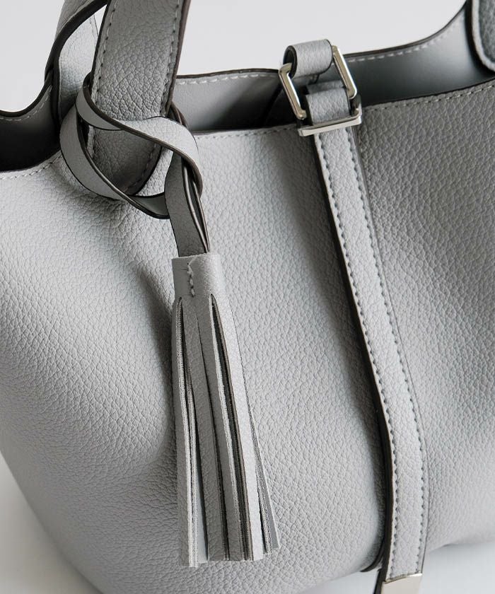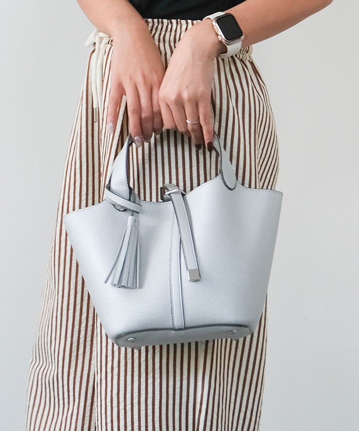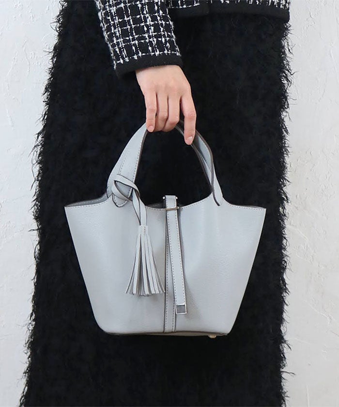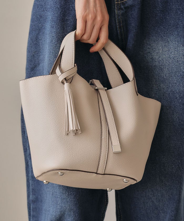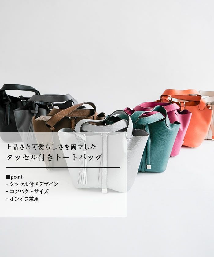 上品さと可愛らしさを両立した、小ぶりなタッセル付きトートバッグ。