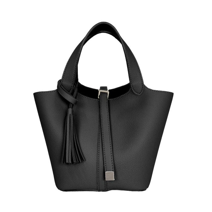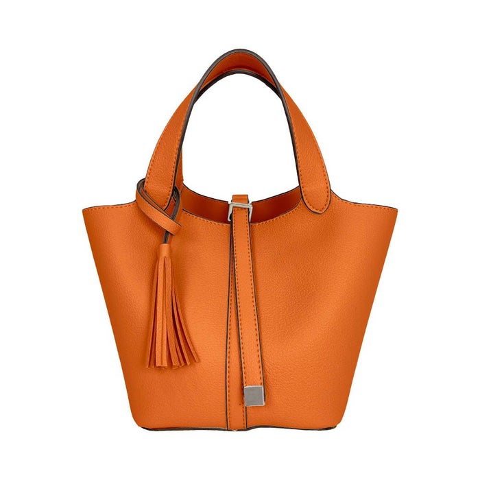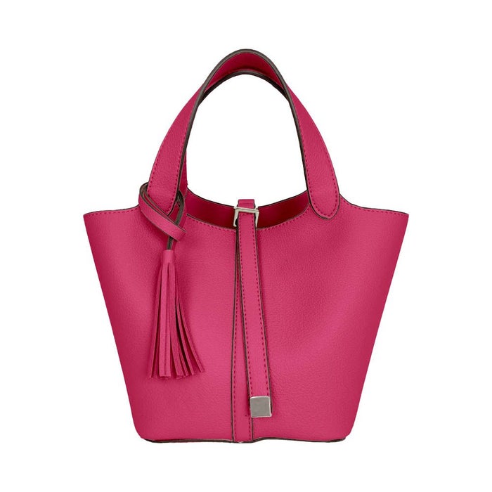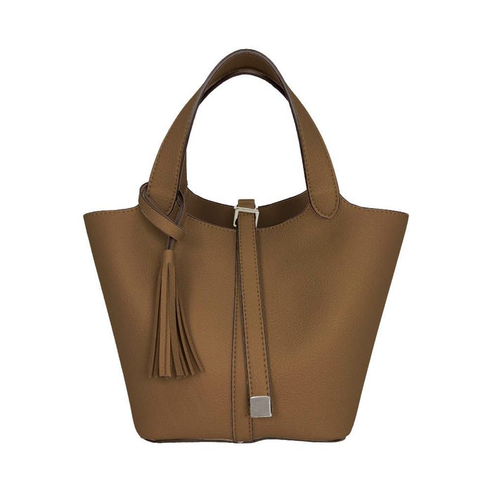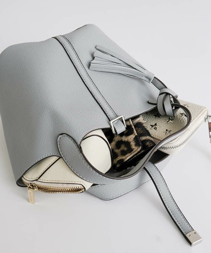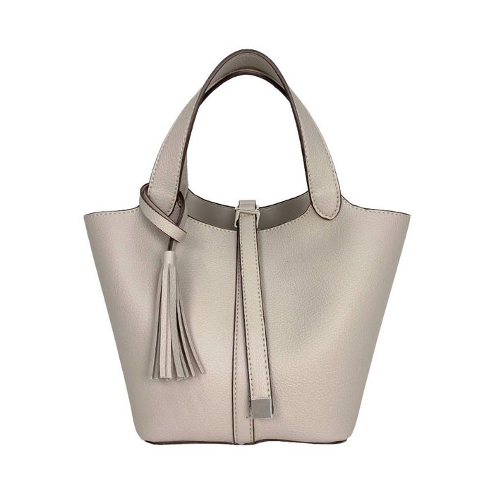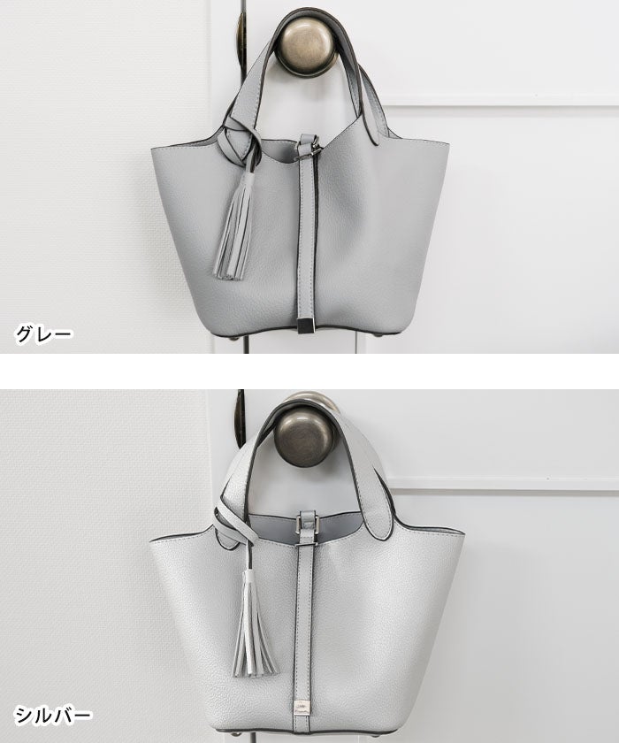 上品さと可愛らしさを両立した、小ぶりなタッセル付きトートバッグ。