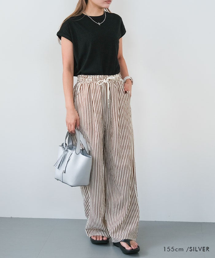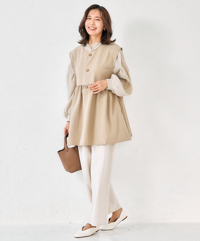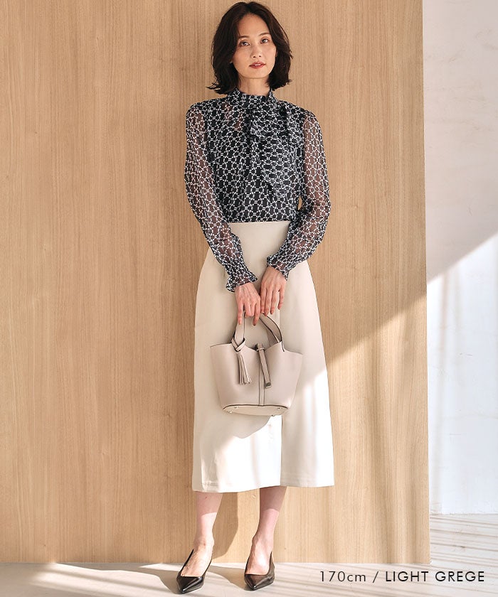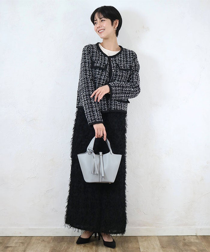 きれいめなオフィスコーデに合わせれば、タッセルが硬すぎない柔らかさを添えて、上品さと女性らしさを両立。