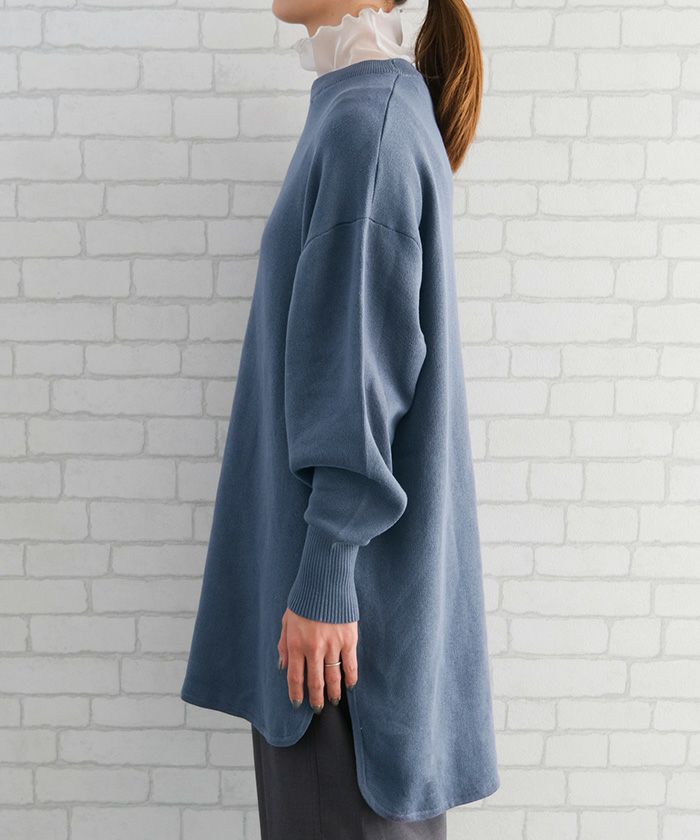 スウェットのようなリラックス感のある着心地のニットチュニック。 ニットのチクチクが苦手な方でも着用いただける優しい肌触り◎ 伸縮性のあるニットで、ストレスフリーな着心地を叶えます。 丈はお尻が隠れる長さで、気になる腰回りもカバーしてくれます。 着回しやすく、大人のカジュアルスタイルにピッタリなアイテムです。