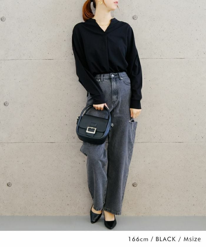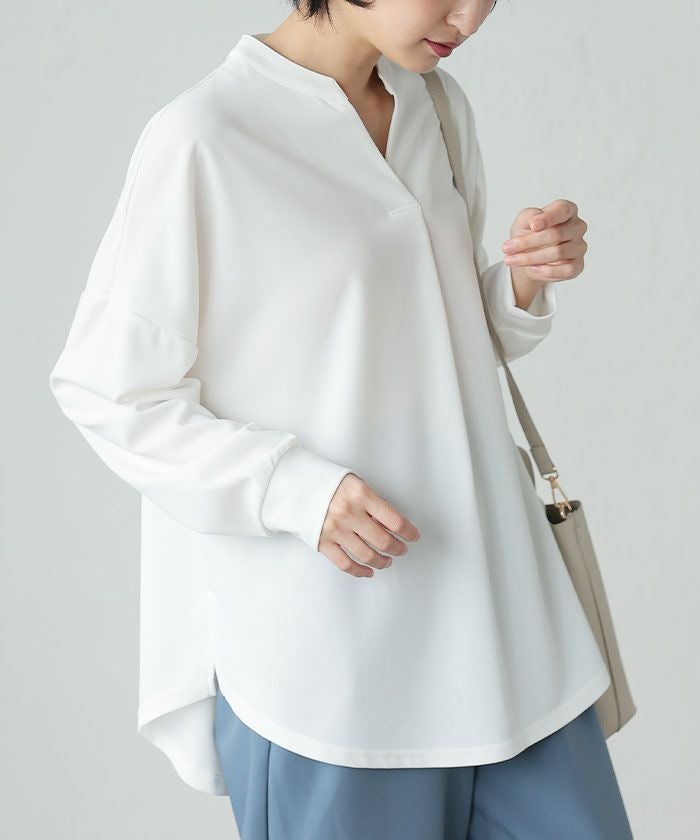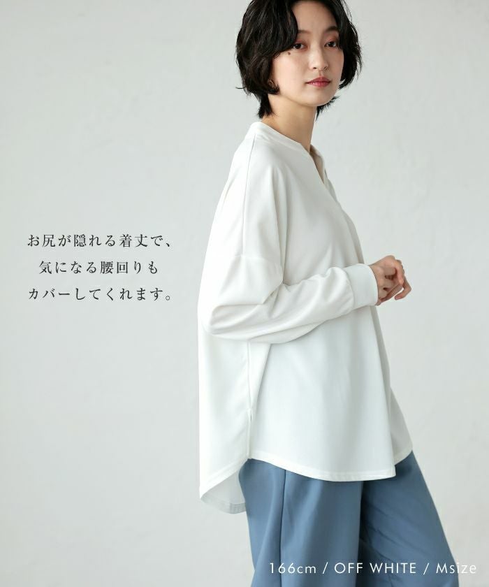 落ち感のある薄手の柔らかな素材感で、体のラインも拾いにくい!