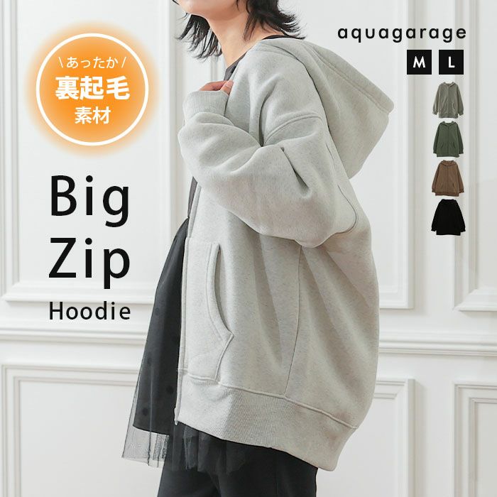 ヘビーウエイト裏起毛オーバーサイズジップパーカー 秋 冬 M L レディース | アクアガレージ aquagarage