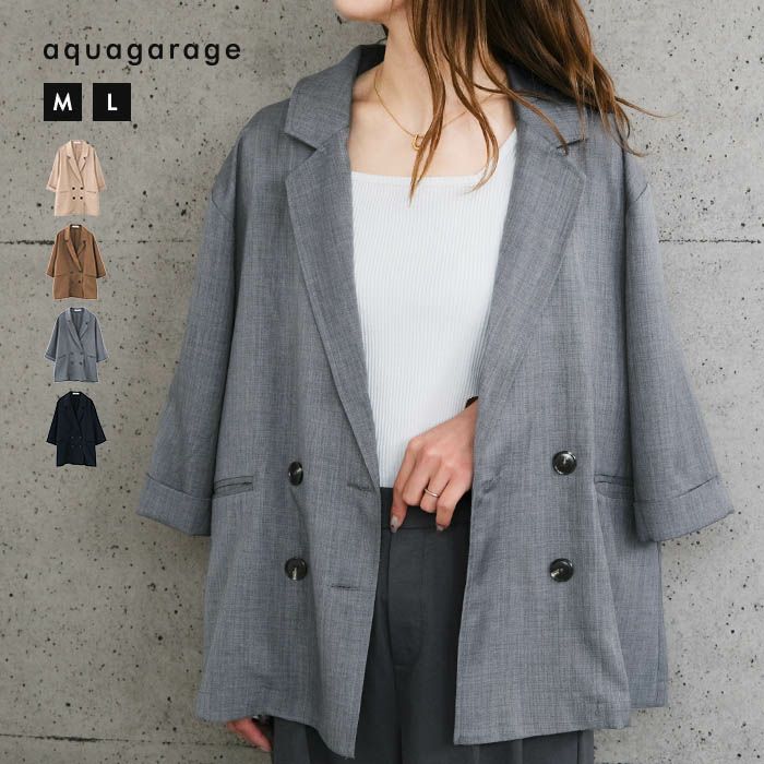 送料無料 リネンライクダブルブレスト半袖テーラードジャケット 春 夏 秋 M |アクアガレージ aquagarage