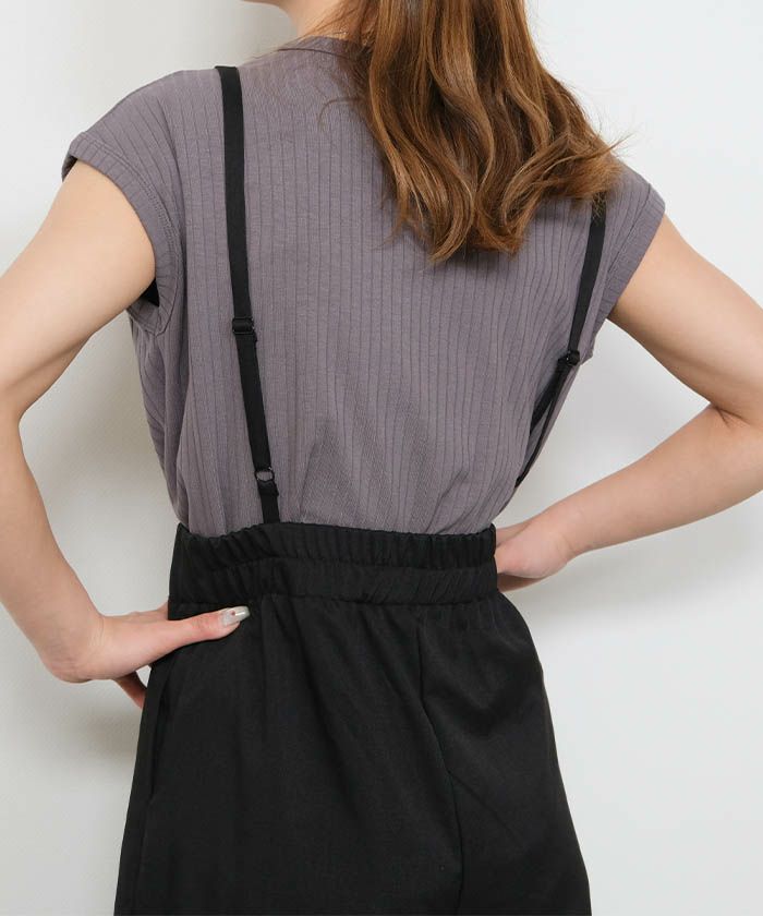 送料無料 リネンライクサスペンダー付きパンツ レディース 春 夏 秋 M ≪ゆうメール便配送30・代引不可≫|アクアガレージ aquagarage