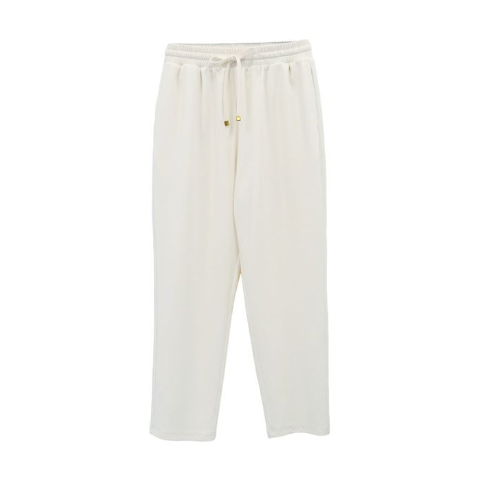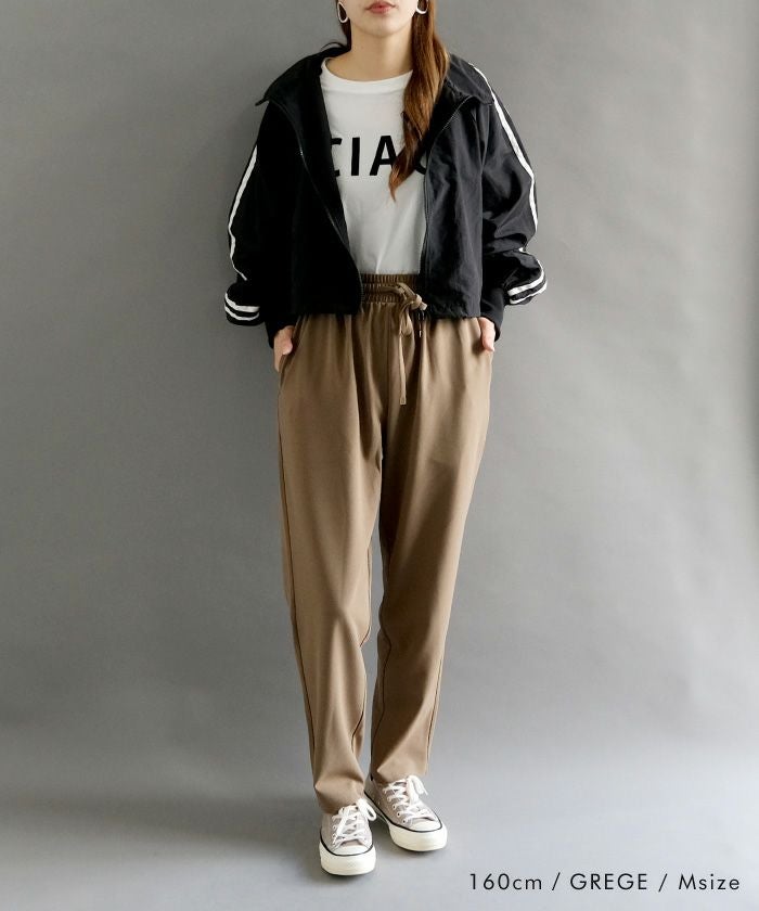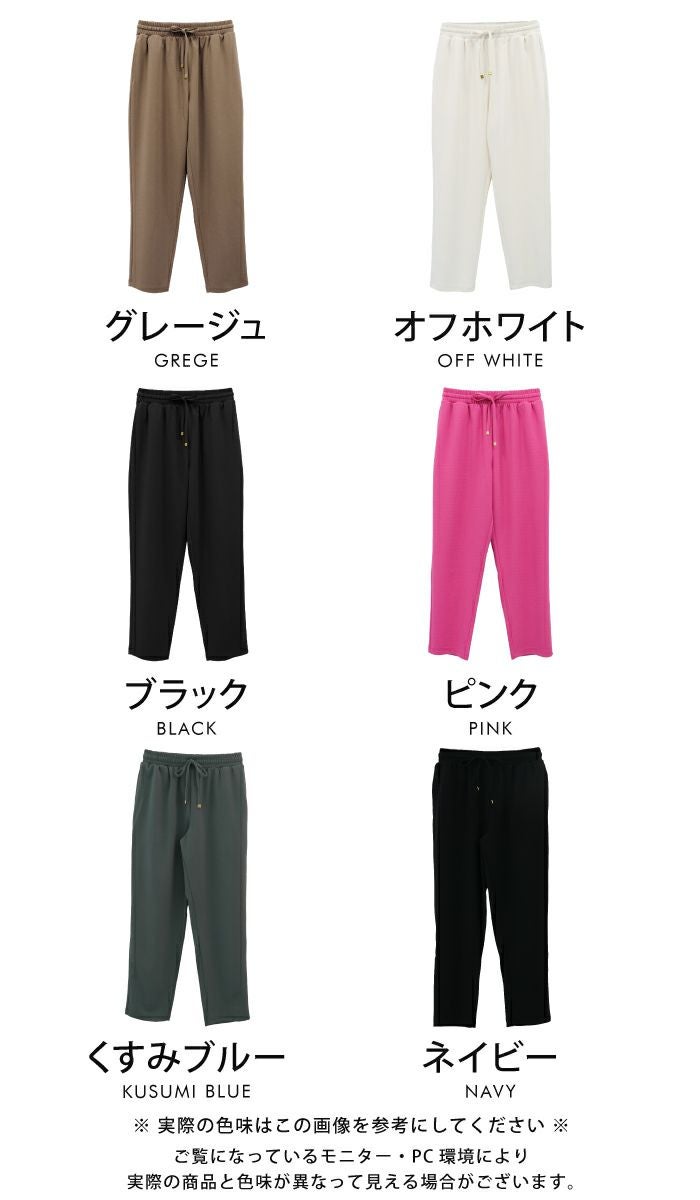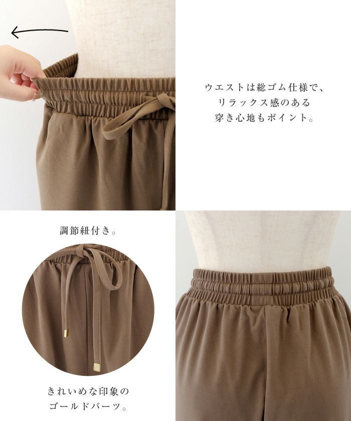 さらっとした梨地素材でロングシーズン使えるうえ、ウエストゴムで穿き心地ラクちん。