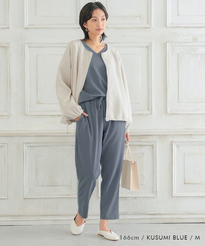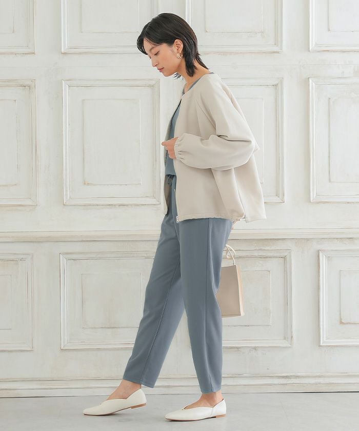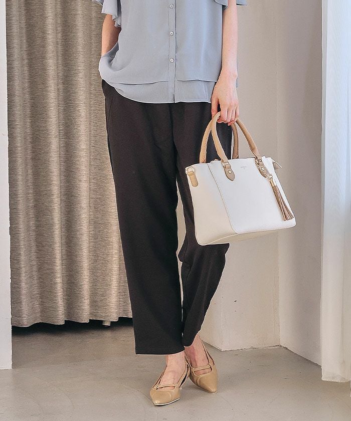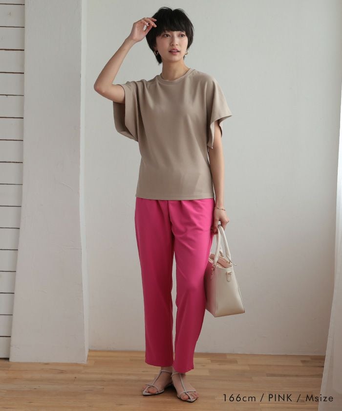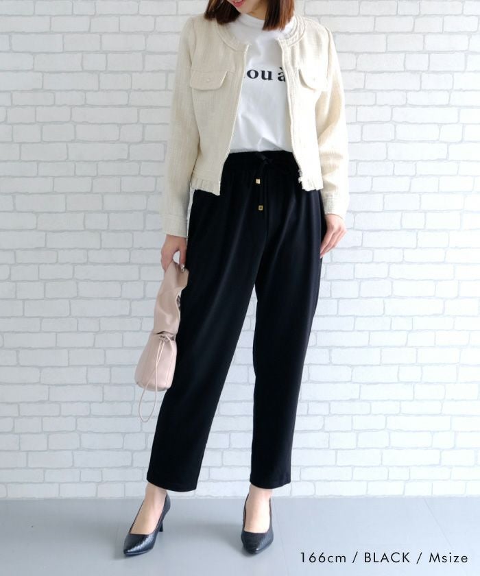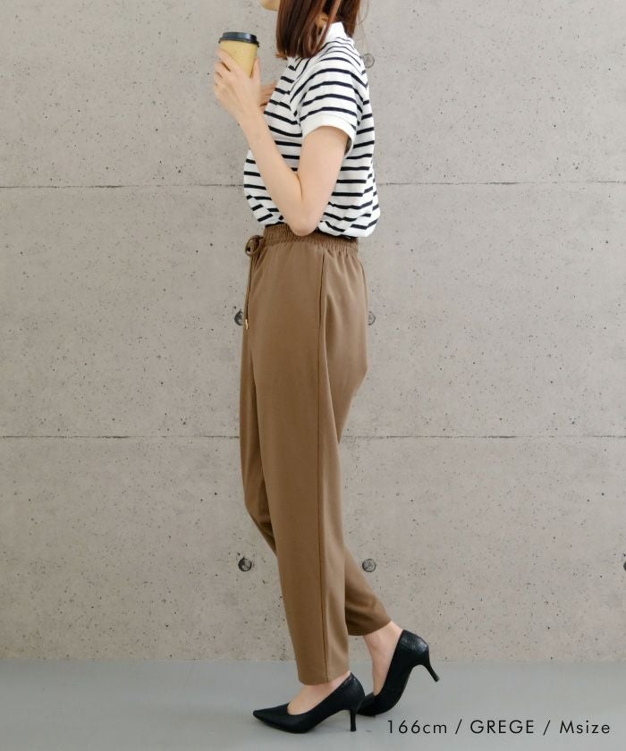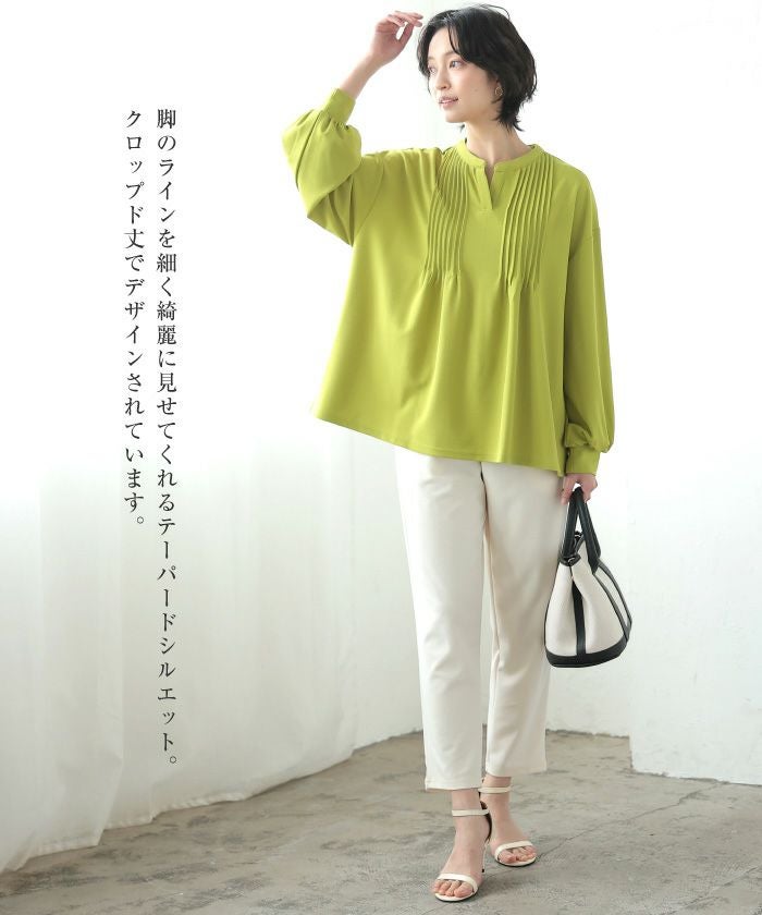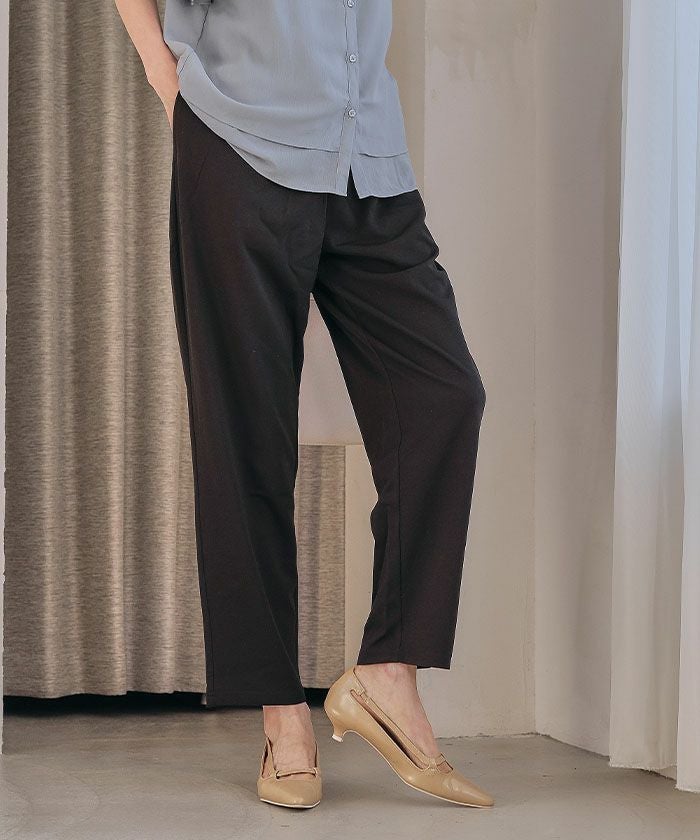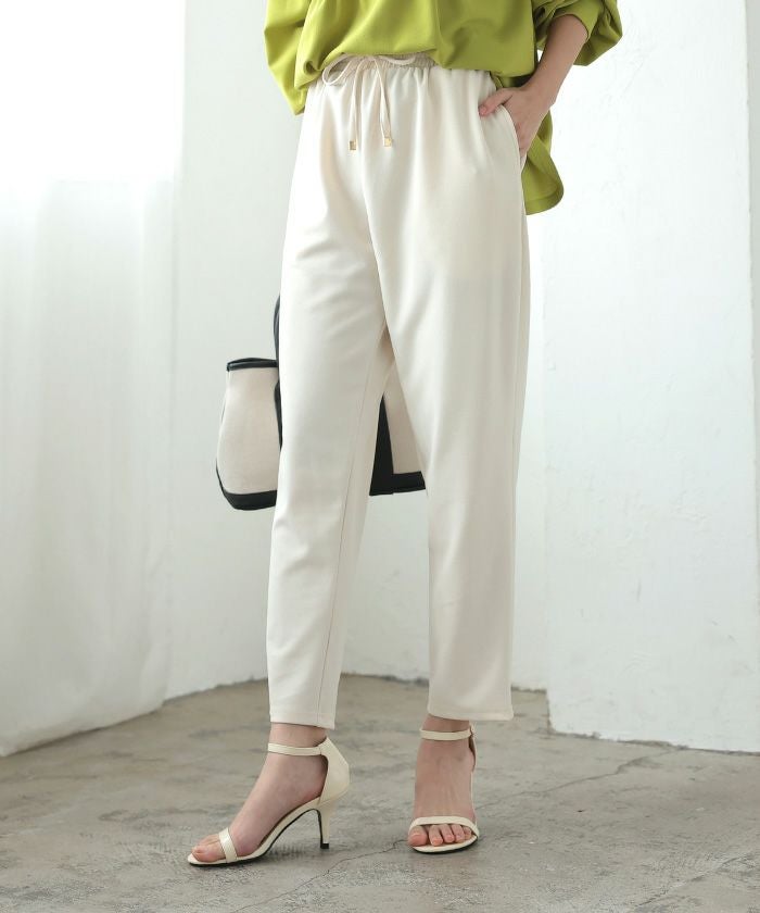 美脚見えと快適さを両立した、テーパードシルエットのパンツ。