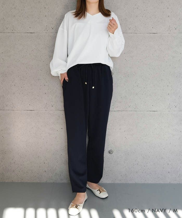 送料無料 梨地ウエストゴムテーパードパンツ レディース 春 夏 秋 M L ≪ゆうメール便配送30・代引不可≫ | アクアガレージ aquagarage
