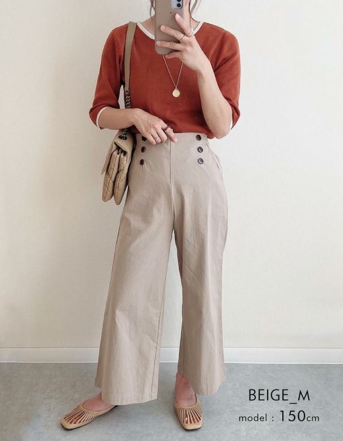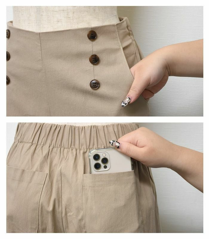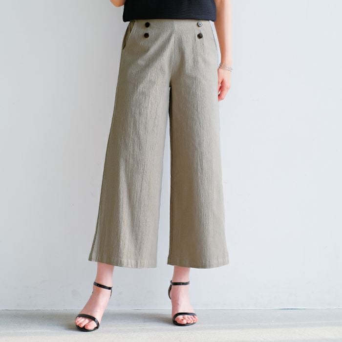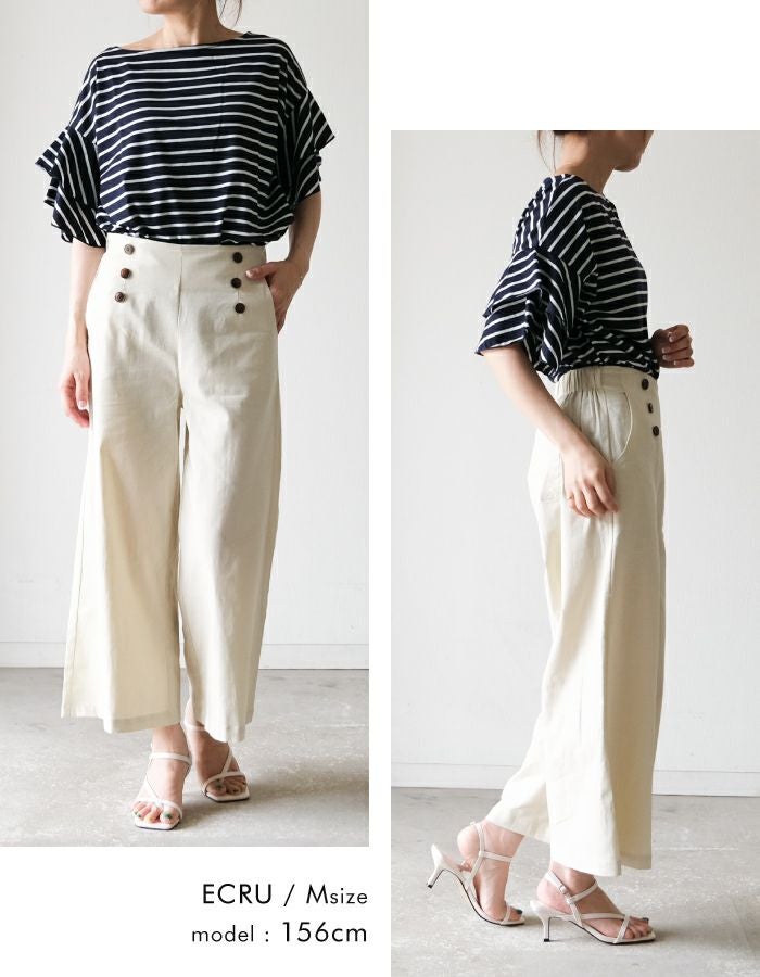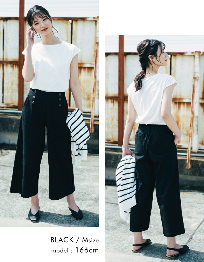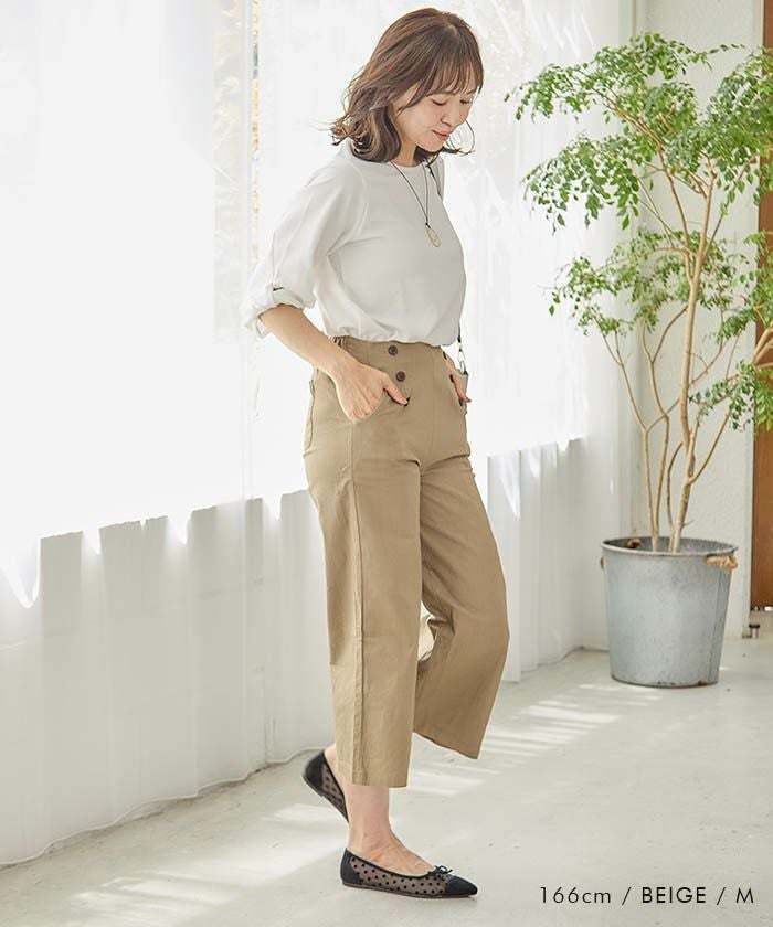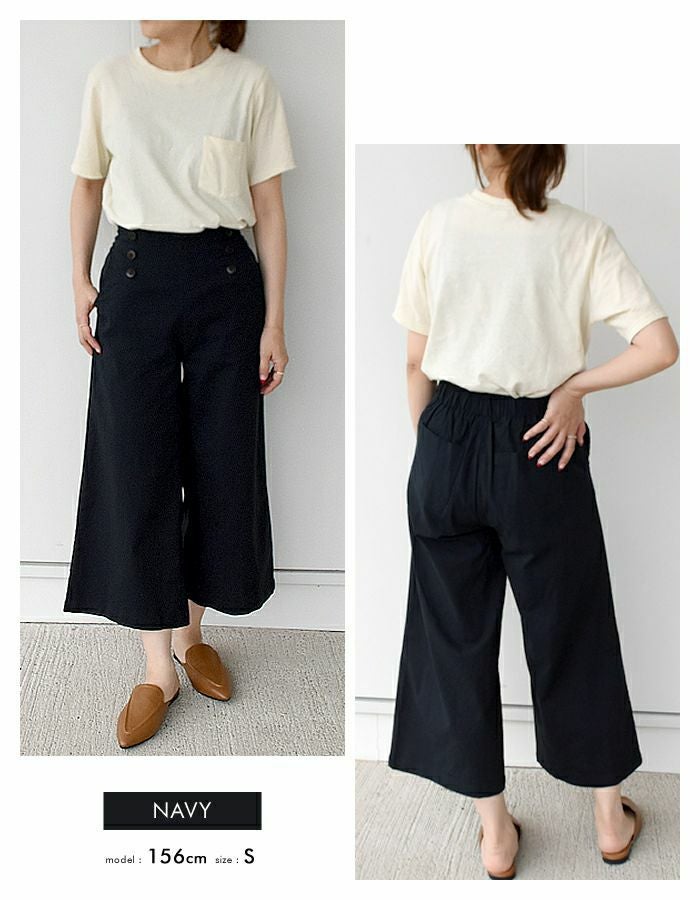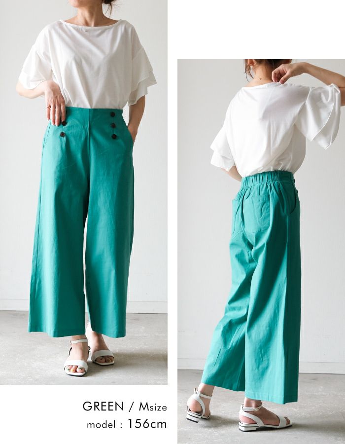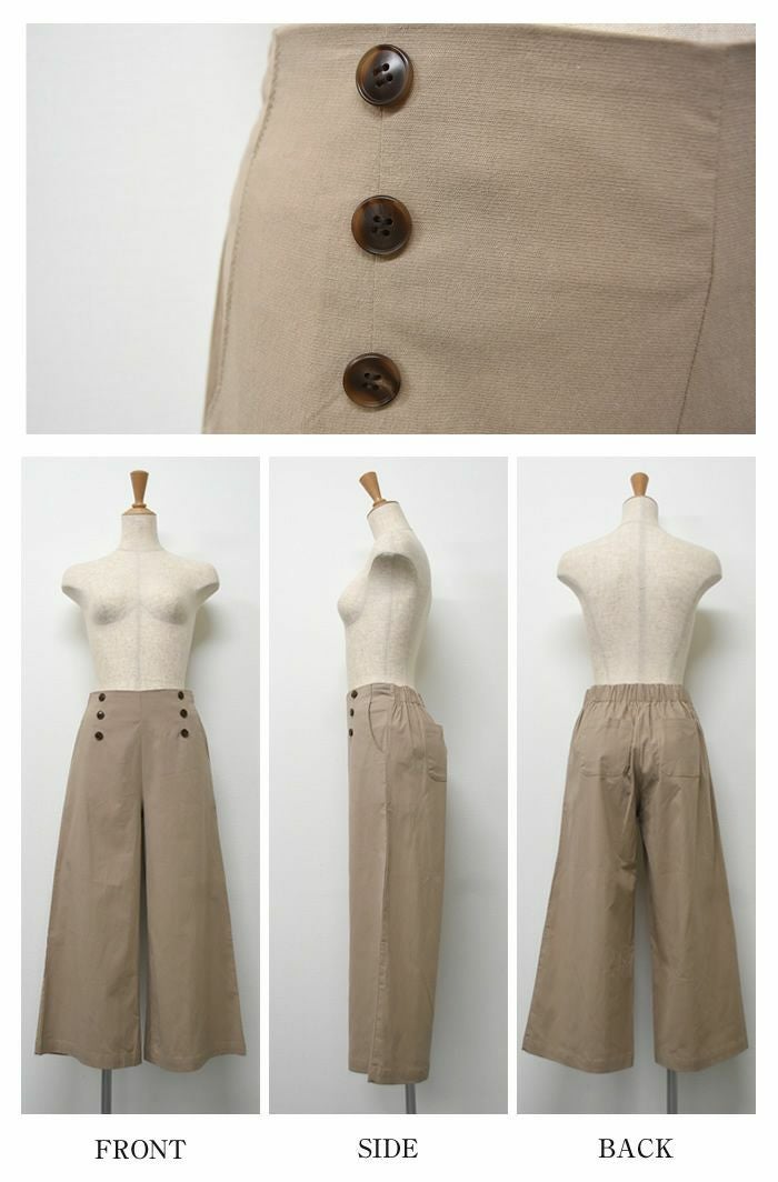 送料無料 フロントボタンワイドパンツ レディース 春 夏 S M L LL ≪ゆうメール便配送20・代引不可≫ | アクアガレージ aquagarage