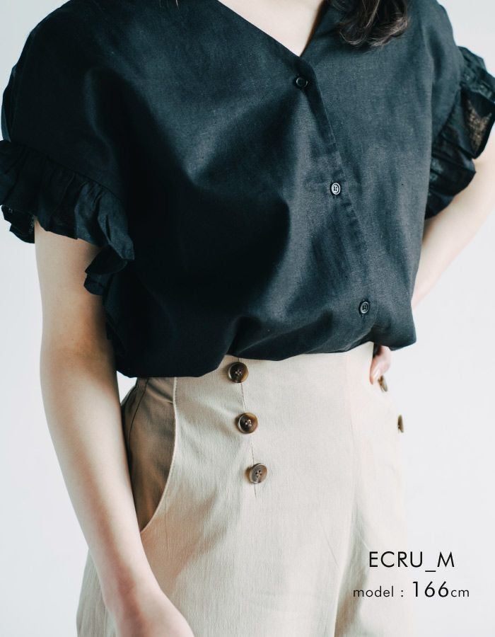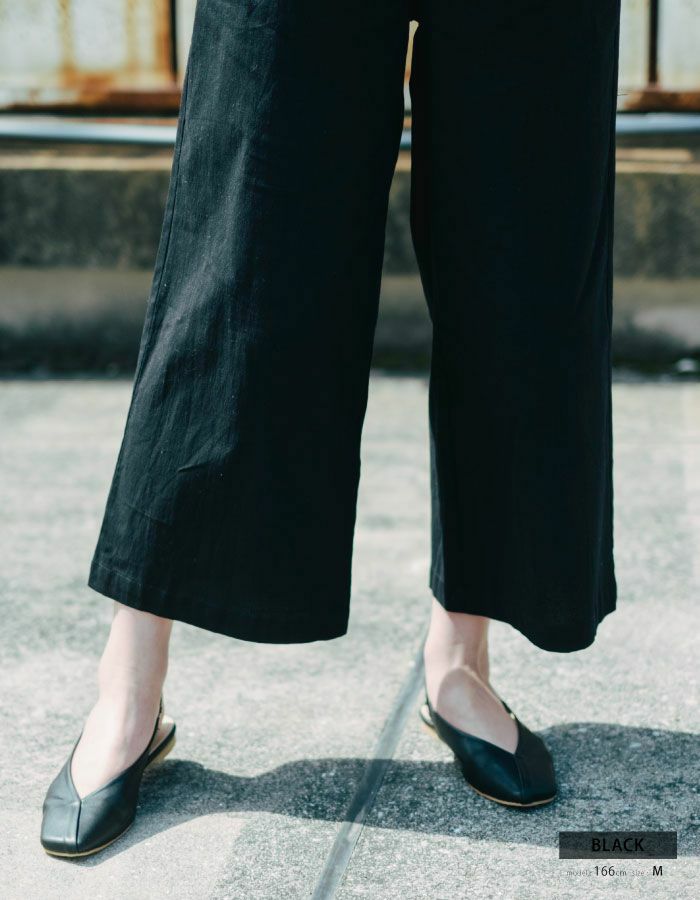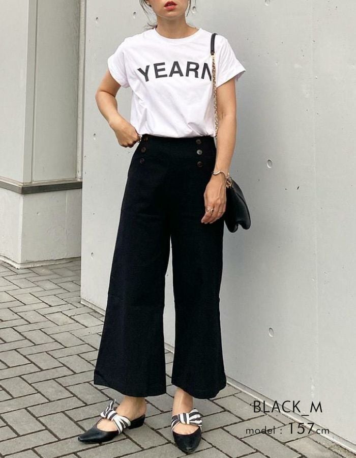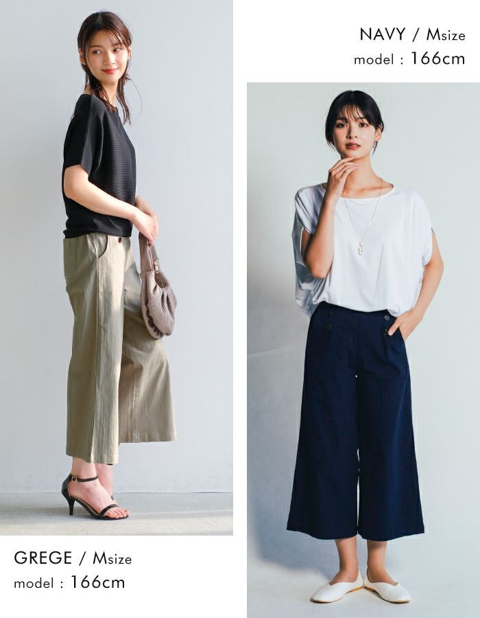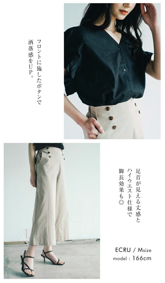 • シルエットで女っぽさを格上げする フロントボタンワイドパンツ。