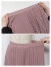 プリーツが縦ラインを強調し、脚長&すっきり見え効果も◎。