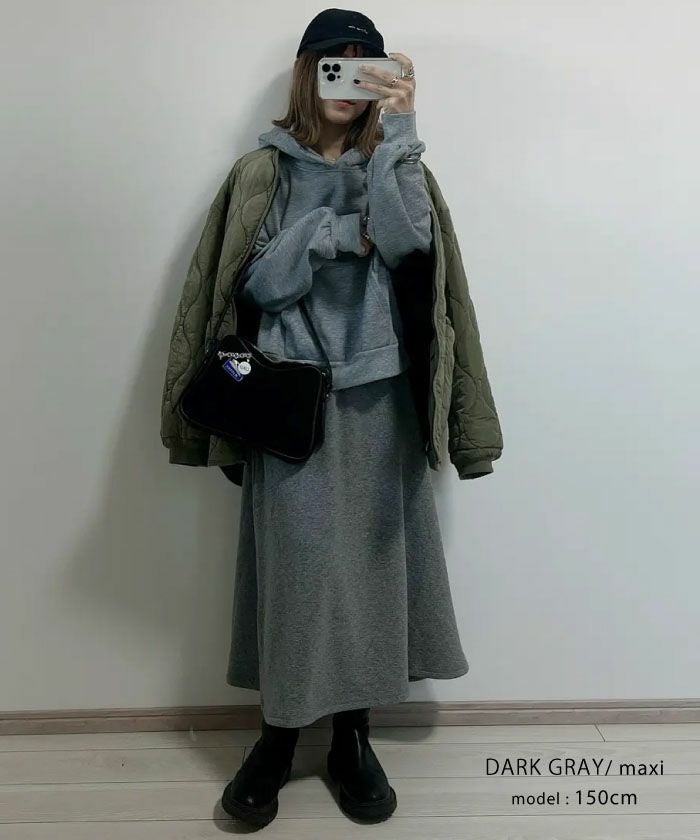 秋~冬用にダークグレイのミモレ丈を購入しました。商品説明の通り厚手のしっかりしたフリース生地で暖かく(今まだ10月なので暑い!)フレアが広がりすぎない形なので背が高くなくてもバランスが良いと思います。色違いのマキシ丈も買ってみようか検討中。