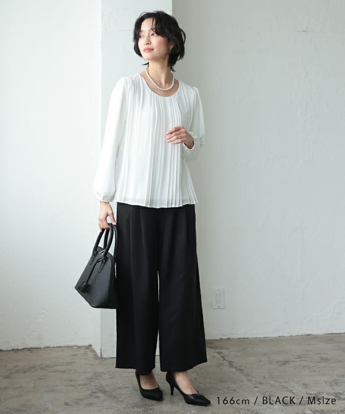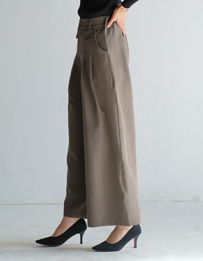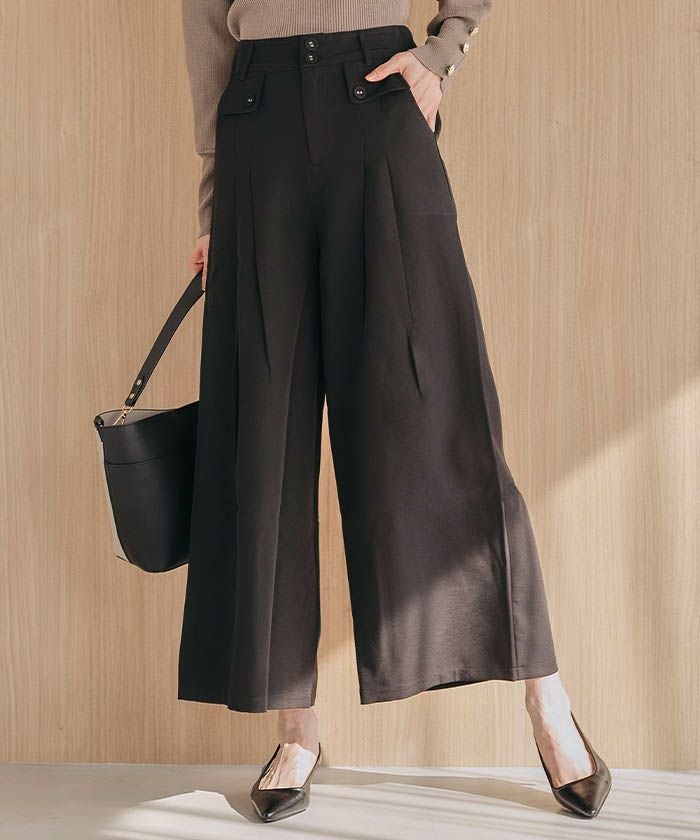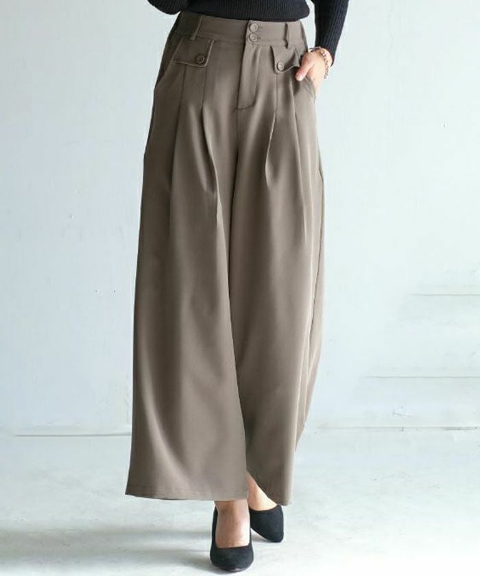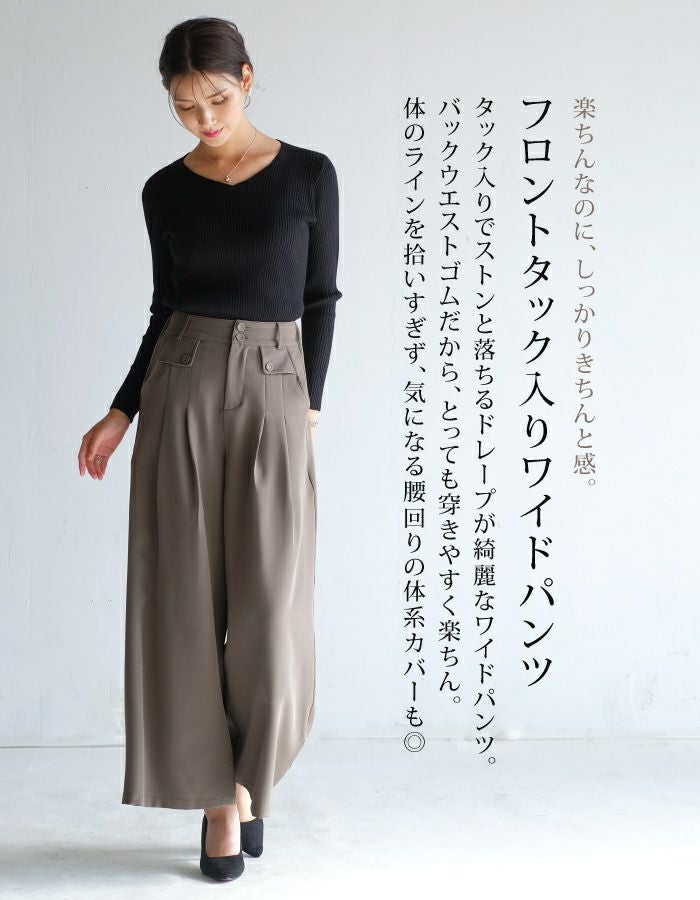 • 楽ちんなのに、しっかりきちんと感。フロントタック入りワイドパンツ