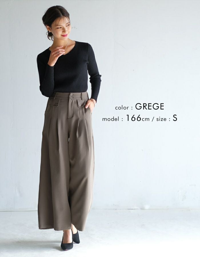 送料無料 フロントタック入りワイドパンツ レディース 春 秋 冬 S P M L LL ≪ゆうメール便配送30・代引不可≫ | アクアガレージ aquagarage