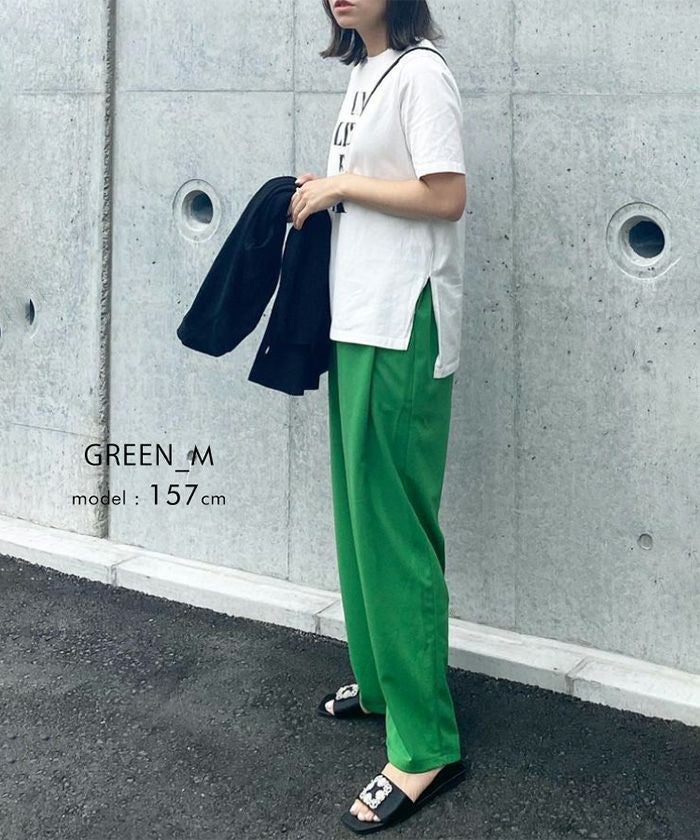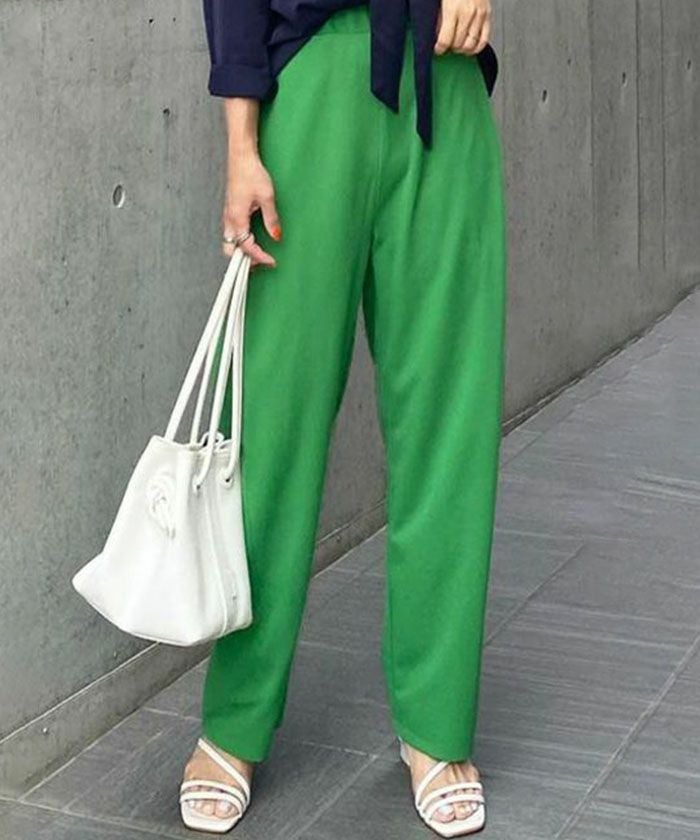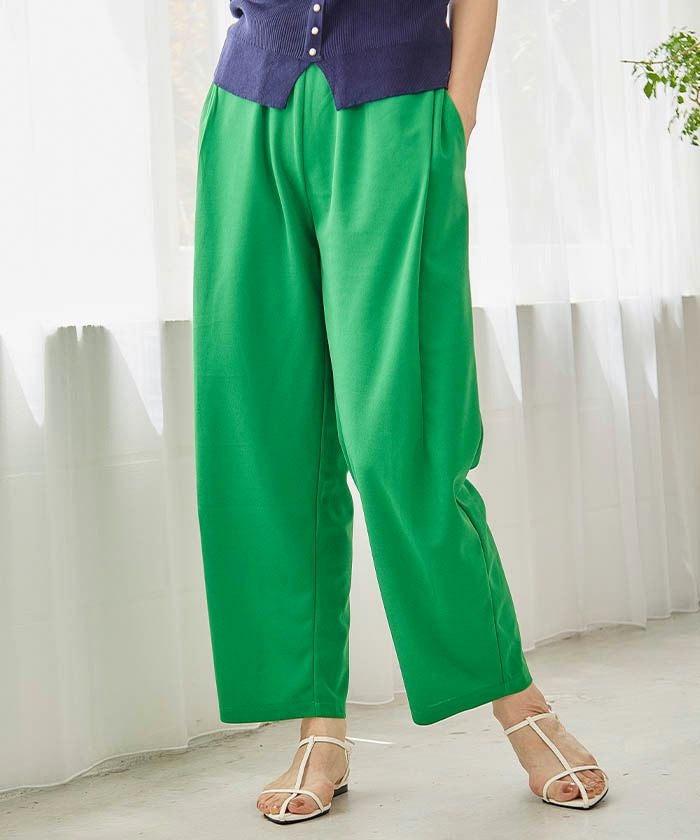 スニーカーからパンプスまで、靴を選ばず合わせやすい万能パンツです。
