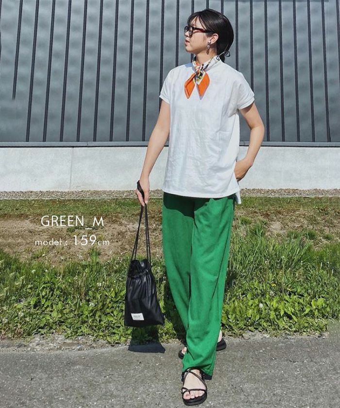 程よいゆとりのあるシルエットが脚のラインを拾わず、体型カバーにも◎。
