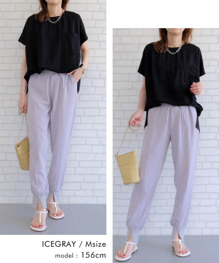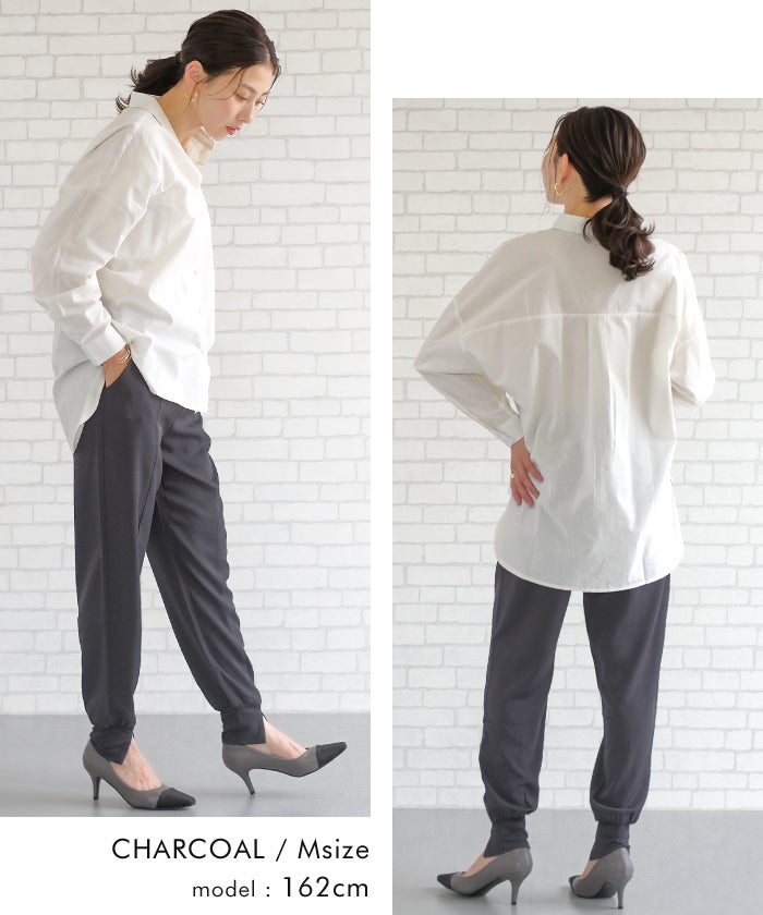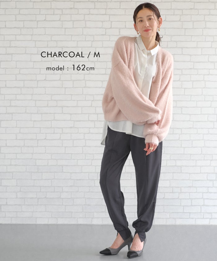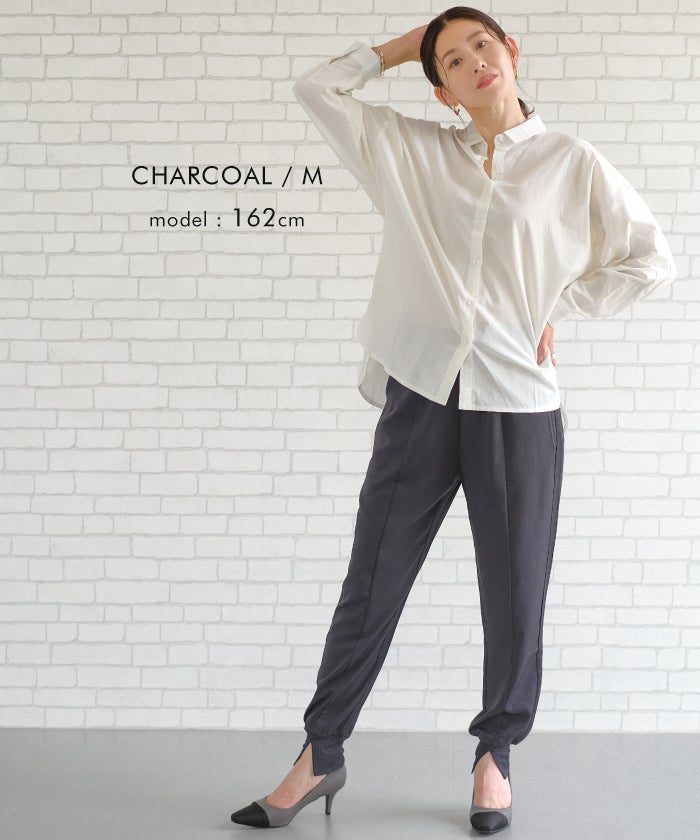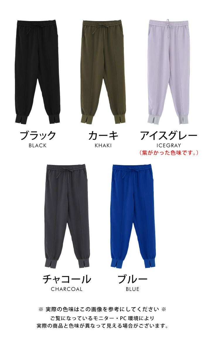 ラフなのにきちんと見えする、センター切り替え入りジョガーパンツ。