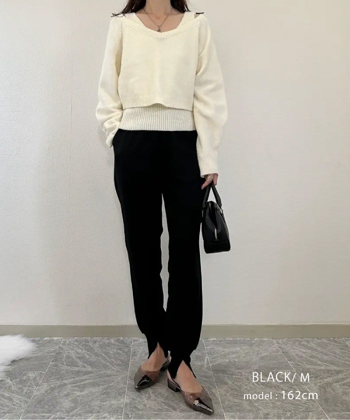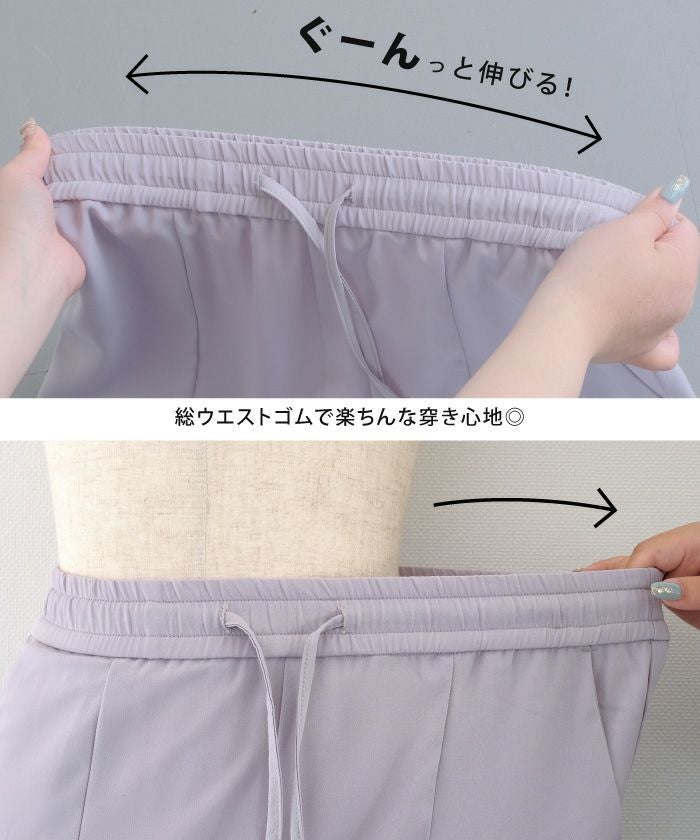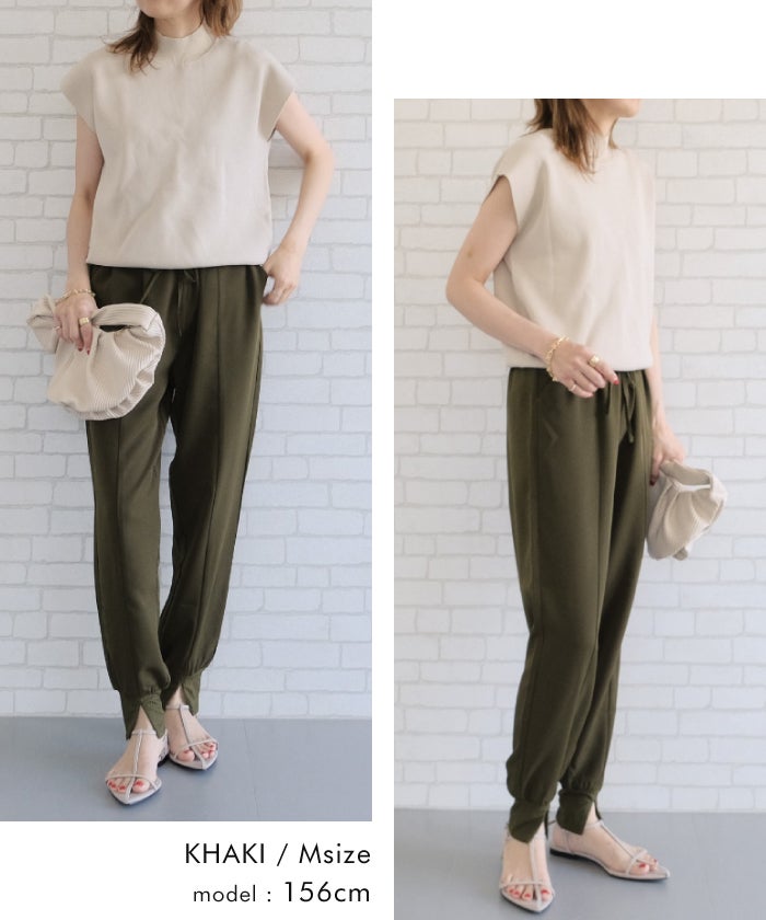 美脚見えする縦ラインデザインと、裾リブ仕様で脚元すっきり。