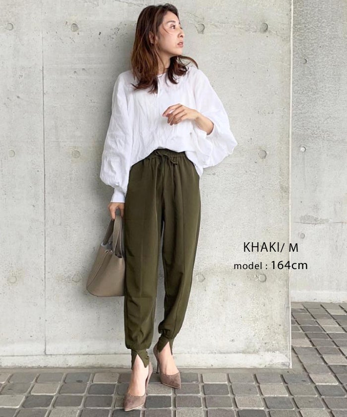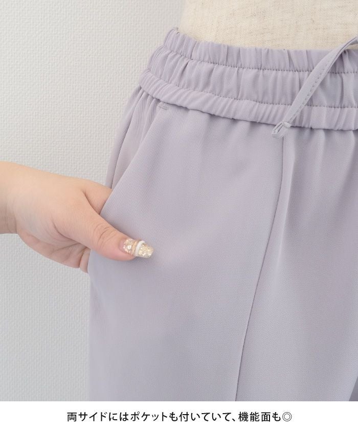 ウエストは総ゴム+ドローストリング仕様でサイズ調整も簡単。