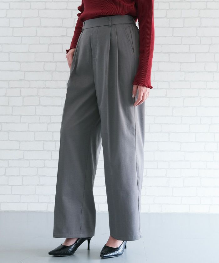 きれいめにもカジュアルにも合わせやすく、ウエストはゴム仕様で履き心地快適です。