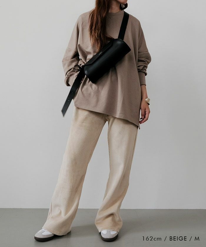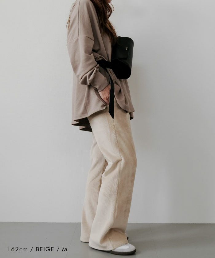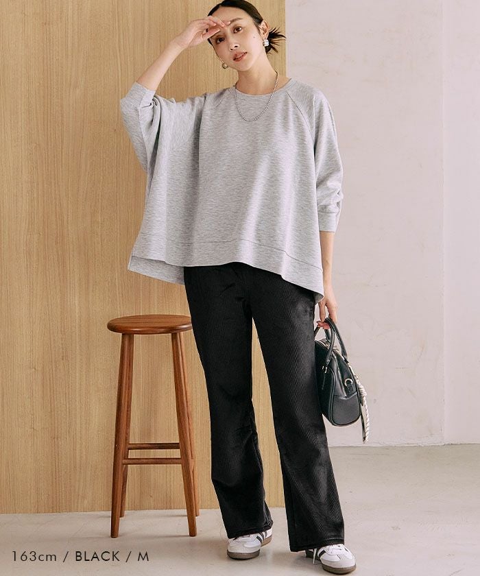 ヒップや太もも周りはゆったりと、膝下にかけて自然に広がるシルエットで、脚長効果も抜群です。