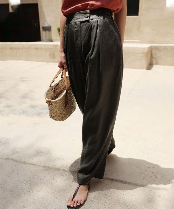 送料無料 ボックスタックリネンライクパンツ レディース M L ≪ゆうメール便配送30・代引不可≫ | アクアガレージ aquagarage