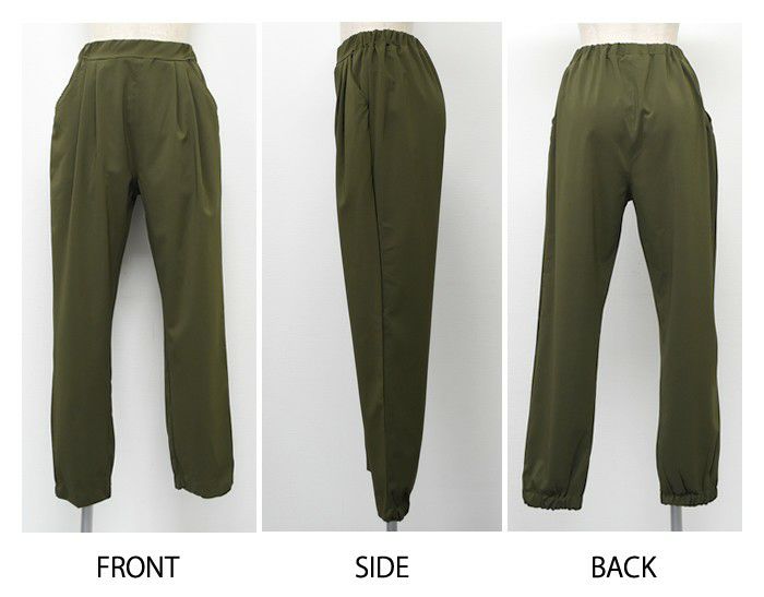 脚のラインを拾いすぎないゆとりのあるテーパードシルエット。