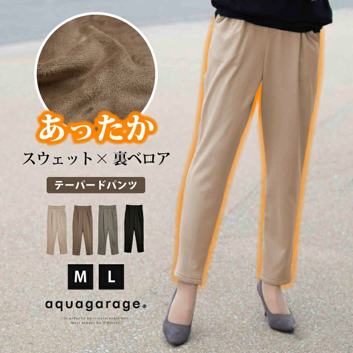 裏ベロアテーパードパンツ レディース 秋 冬 M L | アクアガレージ aquagarage