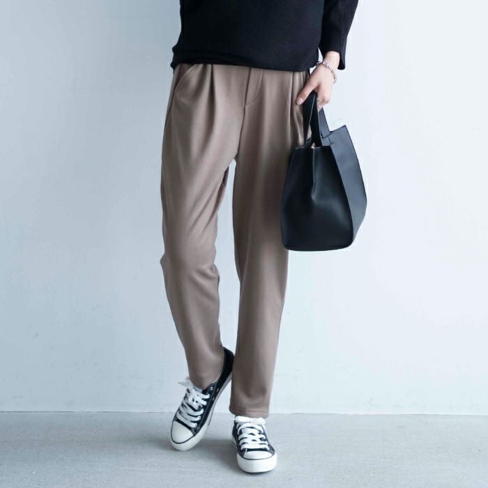 • 寒い季節に重宝すること間違いなし! スウェット裏ベロアテーパードパンツ