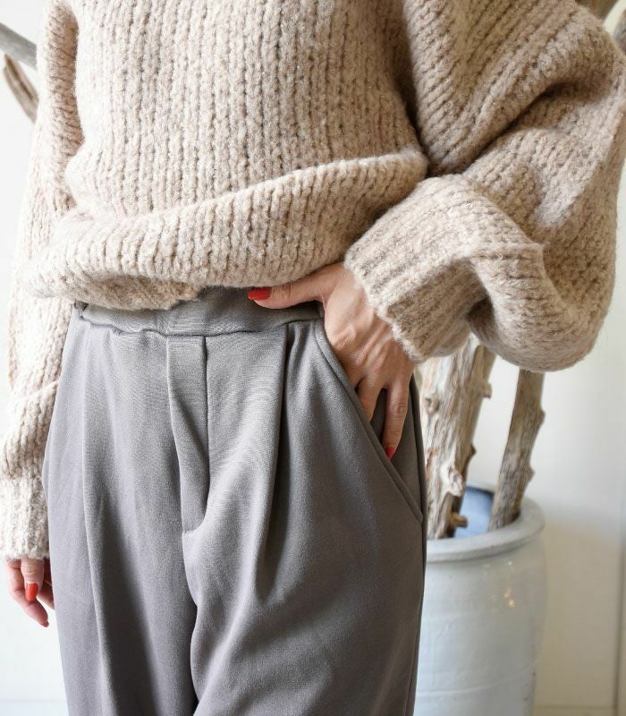 寒い冬も安心のスウェット生地あったか裏ベロアパンツ。裏ベロアなのに着ぶくれ感は少なめ。気になる太もも周りはゆるっとカバーしてくれるのに細めの裾でスッキリ細見え。