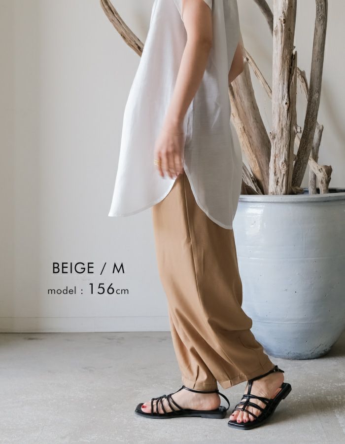 吸汗速乾、接触冷感、UVケアなど多機能なイージーパンツ。 ウエスト部分は総ゴムになっているので穿きやすく楽ちん。 ゆったりシルエットで、体型を隠してお洒落に見せてくれます。