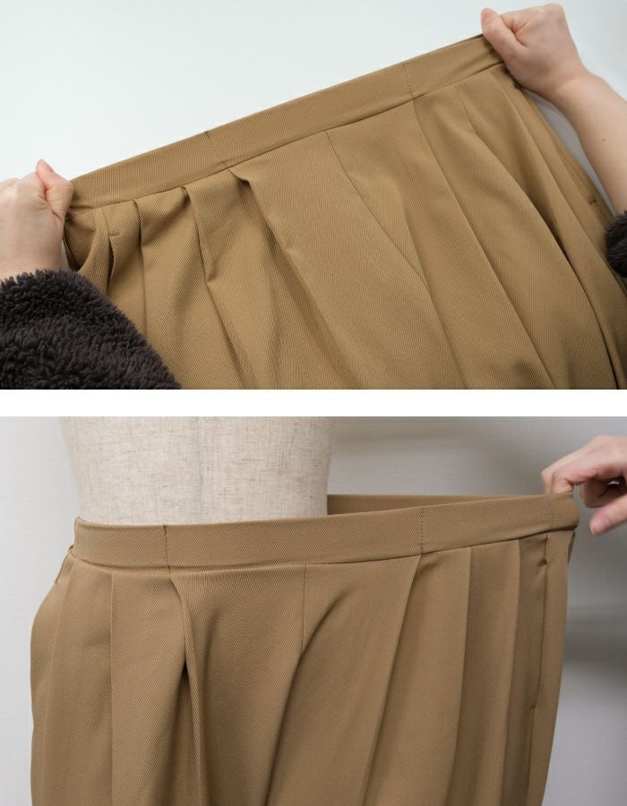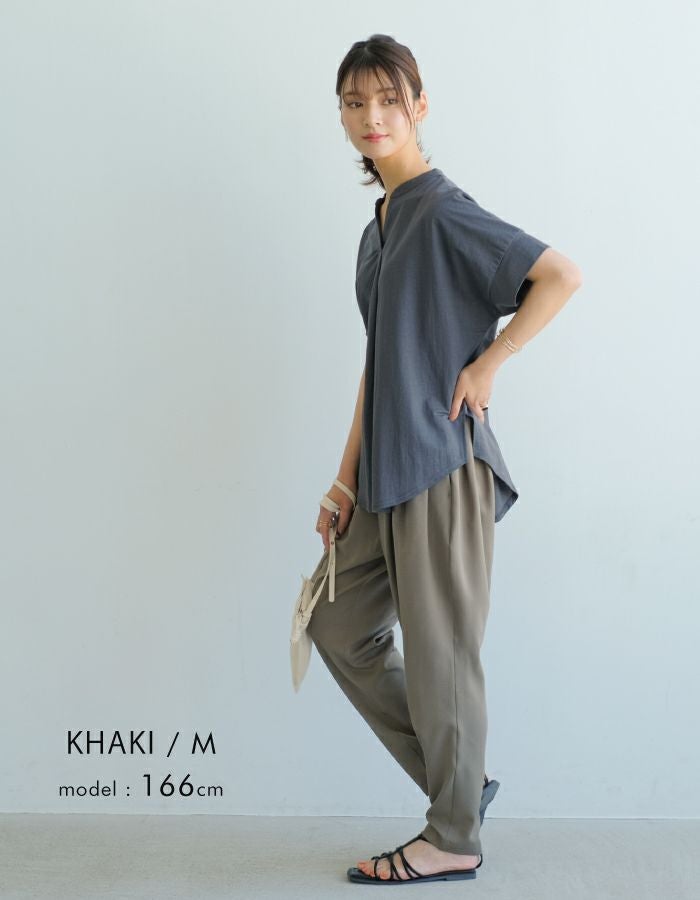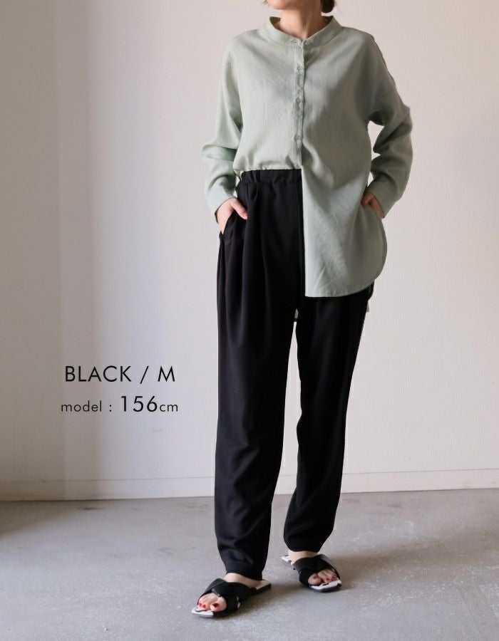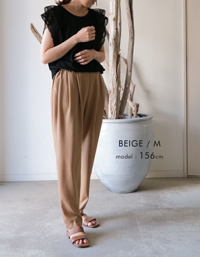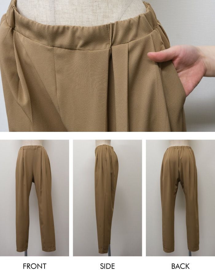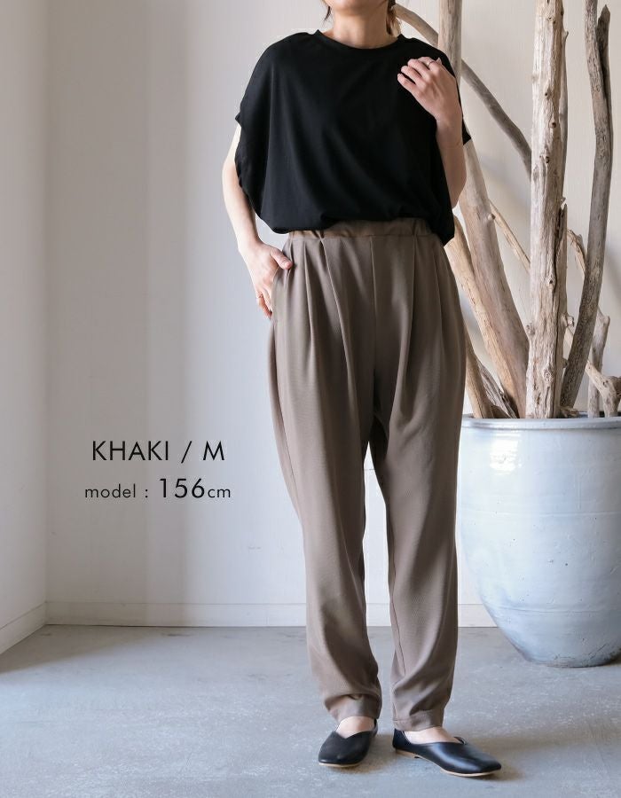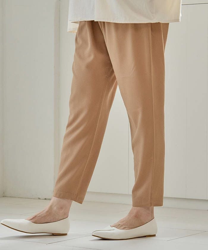 • とっても軽くて楽ちんな穿き心地が魅力! カルゼ調のタックテーパードパンツ