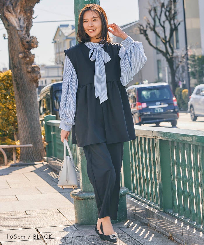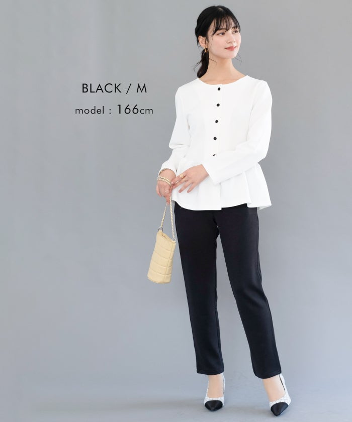 送料無料 パール付きブラウスパンツセットアップ レディース 春 秋 長袖 M L | アクアガレージ aquagarage
