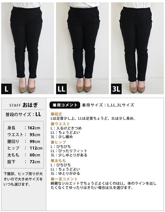 【3L】着丈:105cm ウエスト:82cm~110cm ヒップ:104cm わたり幅:30cm 股下:75cm
