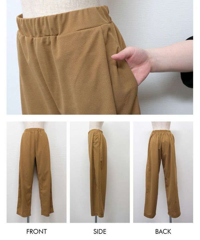程よいゆとりのあるシルエットが脚のラインを拾わず、体型カバーにも◎。