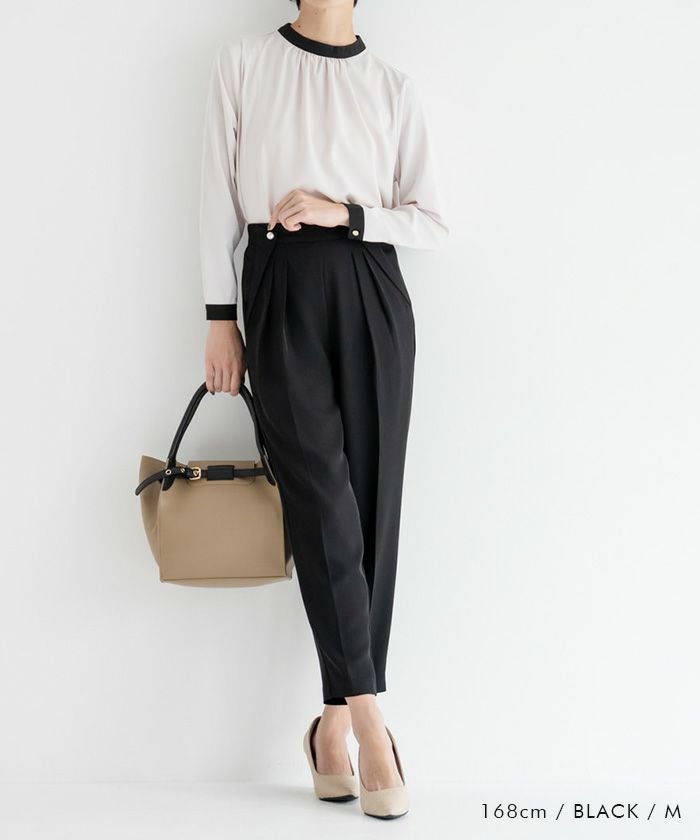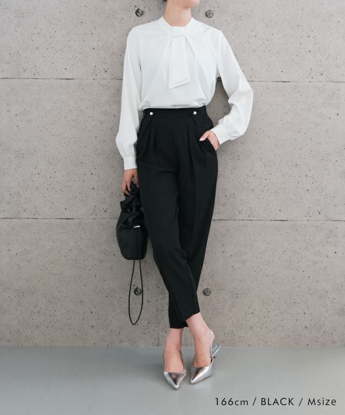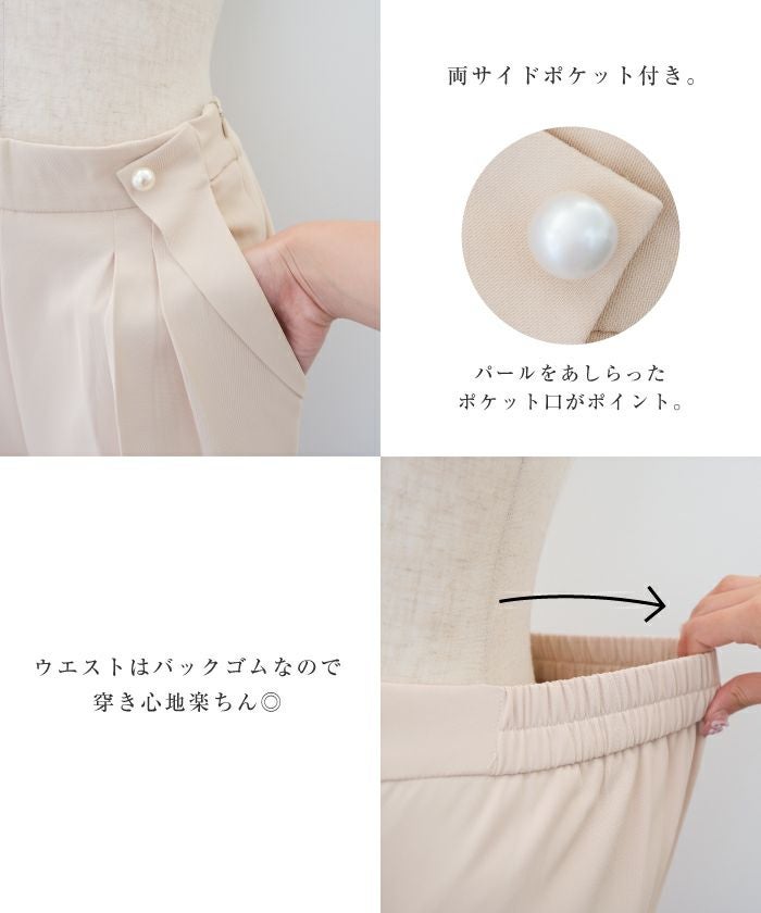• 美脚効果抜群!パール付きテーパードパンツ